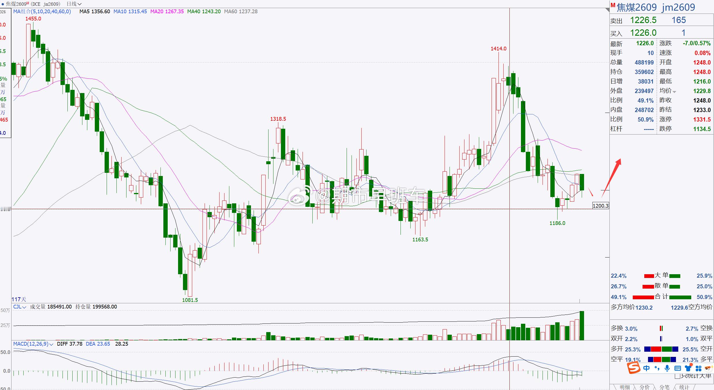 1、【焦煤2609】焦煤后市重点关注1200一带!焦煤目前处于宽幅横盘调整,后市建议重点关注1200一带,若此位置未能跌破延续,建议短期跟进,看短期反弹修正;稳健者建议先观望;例如多关注1206—1196附近,上方先关注1250附近;空关注1250突破情况再择机考虑介入;(建议仅供参考,具体操作以开盘点位实时跟进,据此操作风险自担)