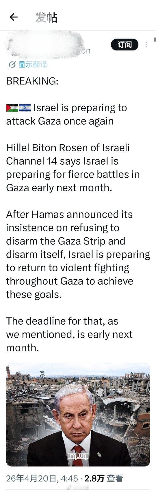 突发新闻:以色列正准备重启加沙战争