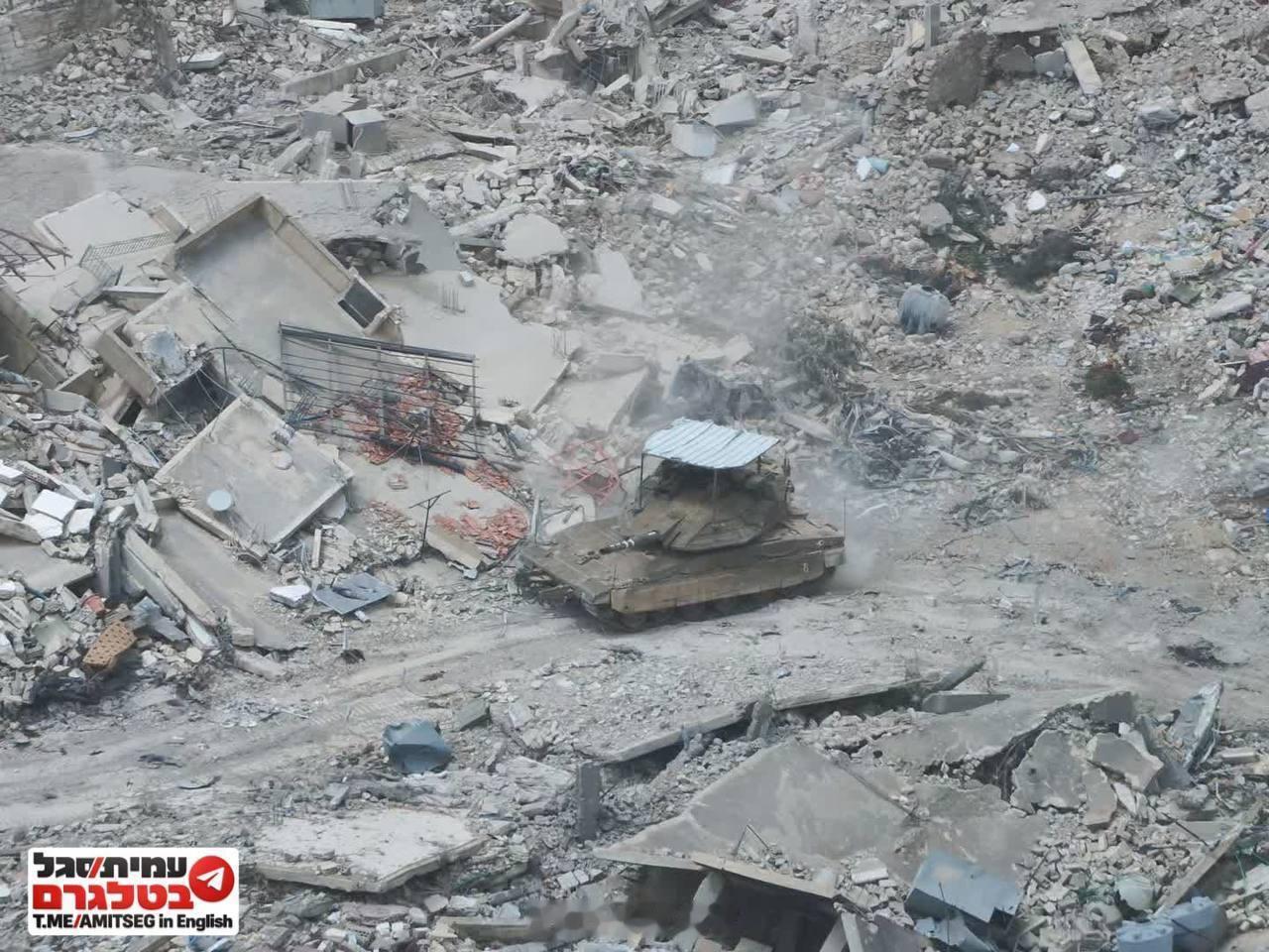 一辆以色列梅卡瓦坦克停在黎巴嫩南部城市宾特杰拜勒的废墟中。烽火问鼎计划黎以战争