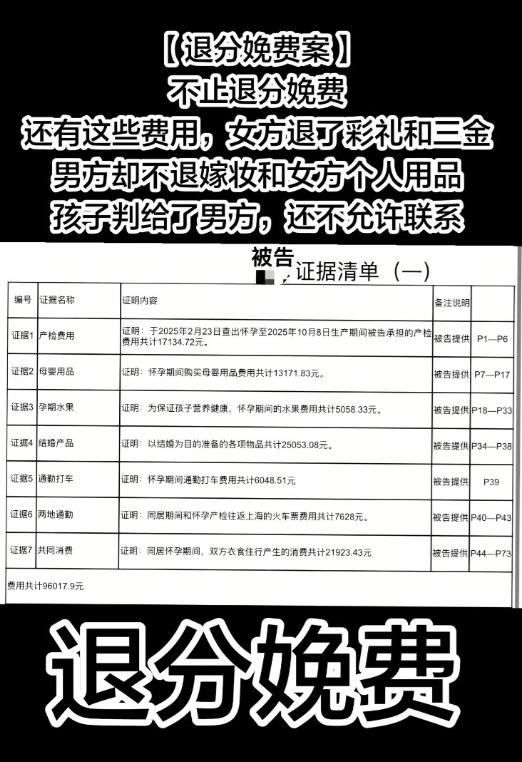 陈明不但要收回给出的全部彩礼,甚至连生孩子的住院费、请月嫂的钱、给孩子买奶粉的支出,都要求李捷分摊一半。