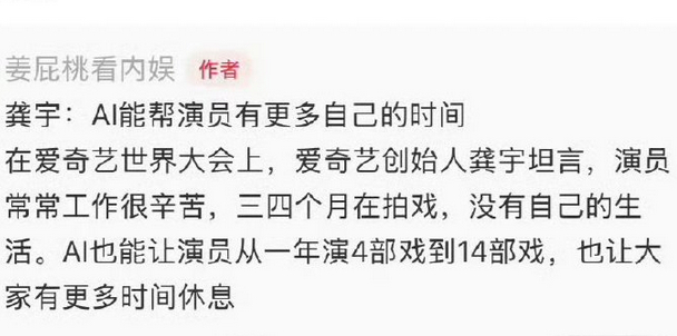 AI演员的发展如果是因为心疼演员,那真的是不知这世间疾苦,明星高收入还担心他们没时间休息?难以理解。
