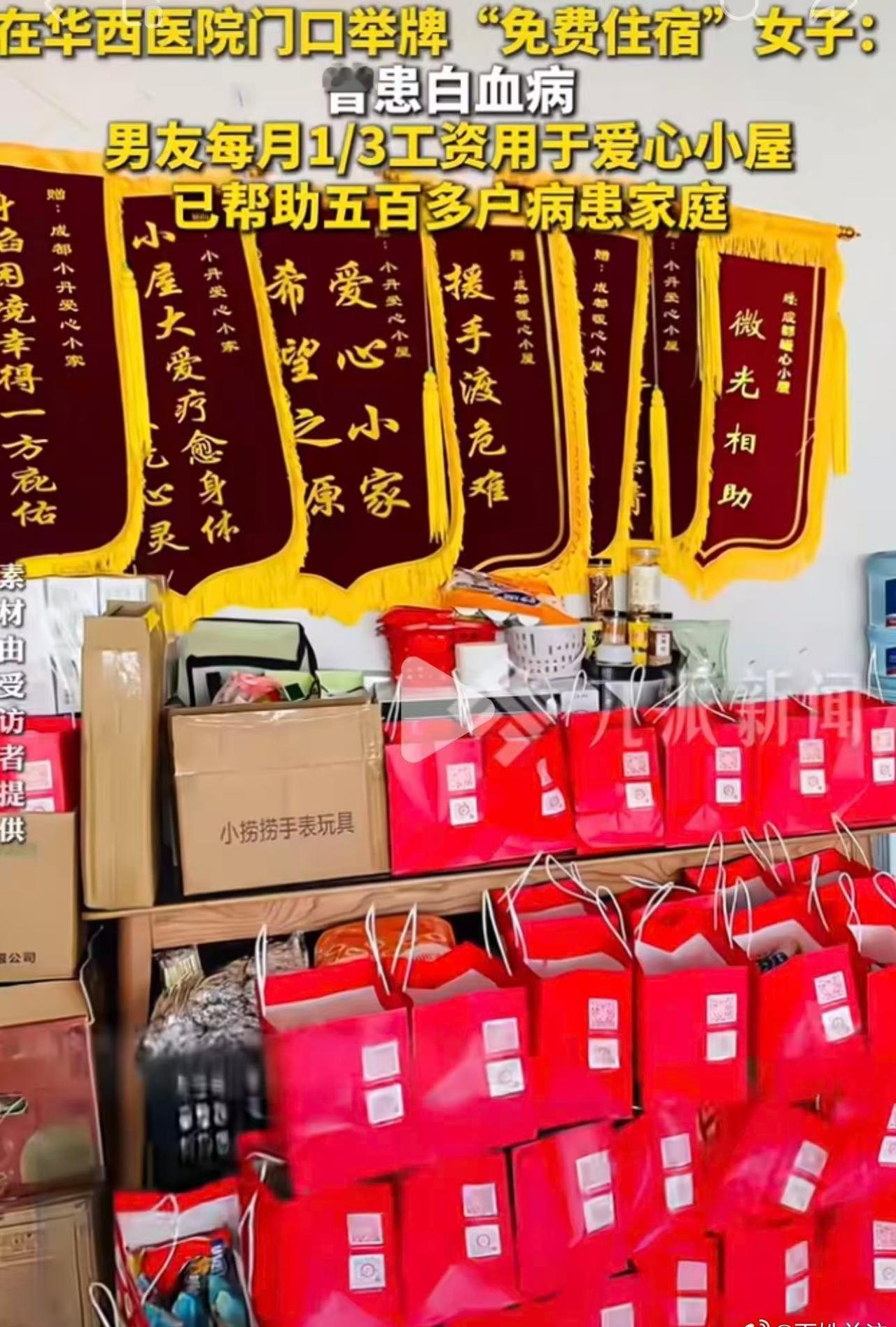 这个姑娘叫高小丹。她和男友在华西医院旁边租了一间130平的房子,月租3800,男友每月三分之一的工资都投进去。一年多,500多个外地看病家庭在这里歇过脚。