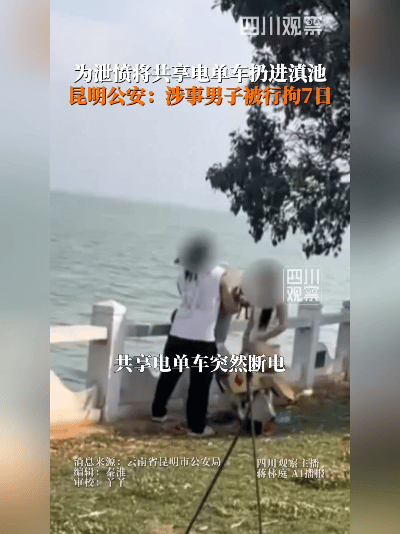 真叫一个糊涂!昆明男子为泄愤把共享电车扔滇池,7天拘留跑不了,这账算得太亏了!