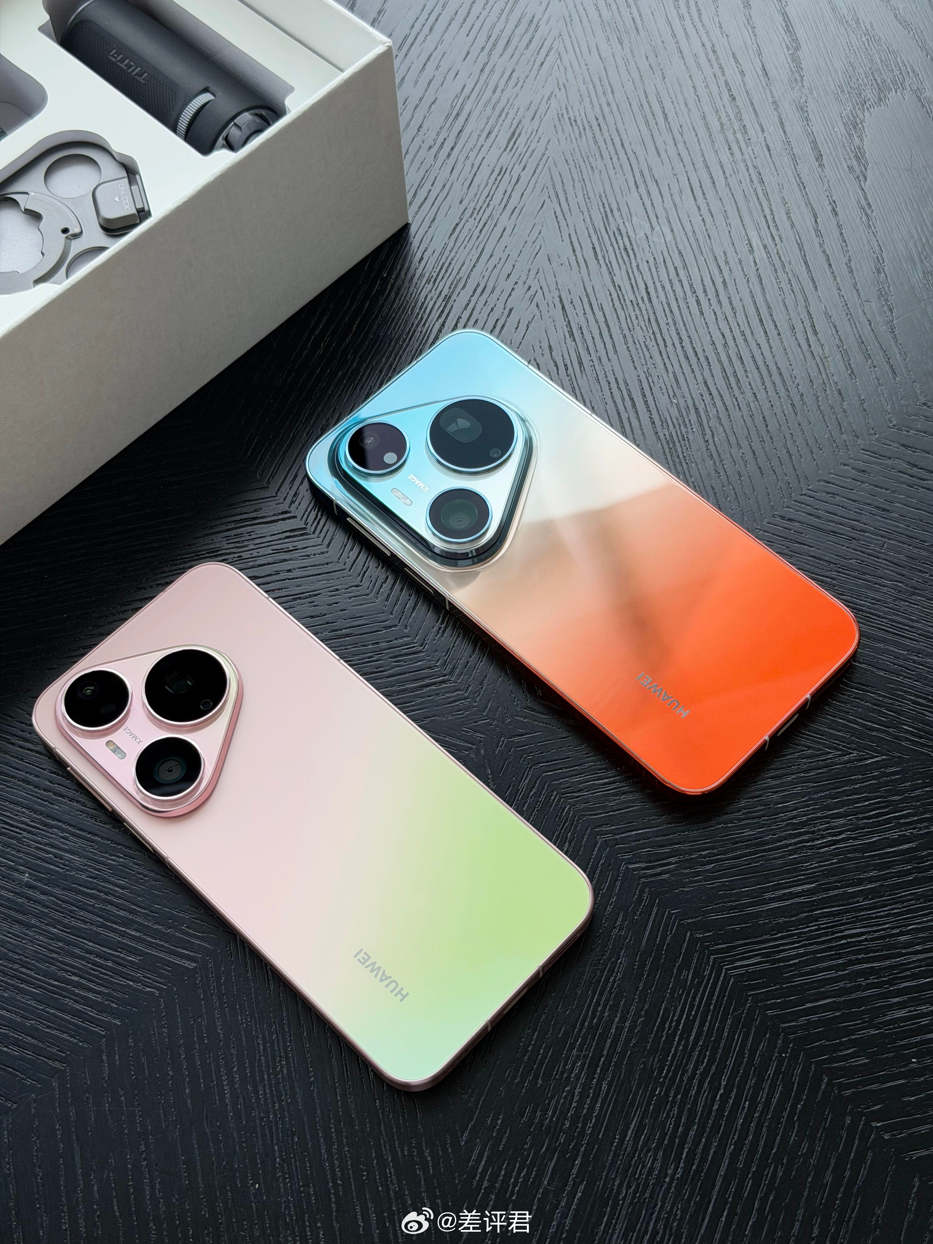 #差评说数码# 先来看一组 Pura 系列新品实拍,发布会前刚在酒店现拍的。Pura 90 系列这边,橘子海和粉红芭乐这两个渐变色有点超出我预期,不得不承认华为在做这种鲜艳色系上的能力,实机比渲染图好看多了,橘子海看上去很通透,没有想象中那么扎眼。Pura X Max 也是,后盖的拼接设计挺有质感的,不会显廉价。