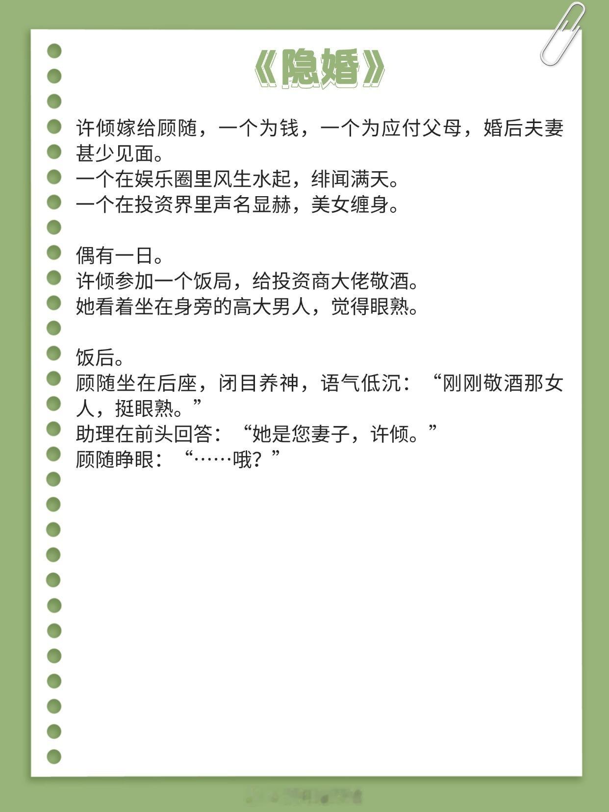 《惊雀》作者:荔枝很甜《云鬓添香》作者:狂上加狂《宠妻之路》作者:笑佳人《酌长夏》作者:发电姬《望春山》作者:假面的盛宴《掌珠》作者:意迟迟《皇城有宝珠》作者:月下蝶影《隐婚》作者:半截白菜《回眸一笑》作者:东奔西顾推文言情小说推荐推文
