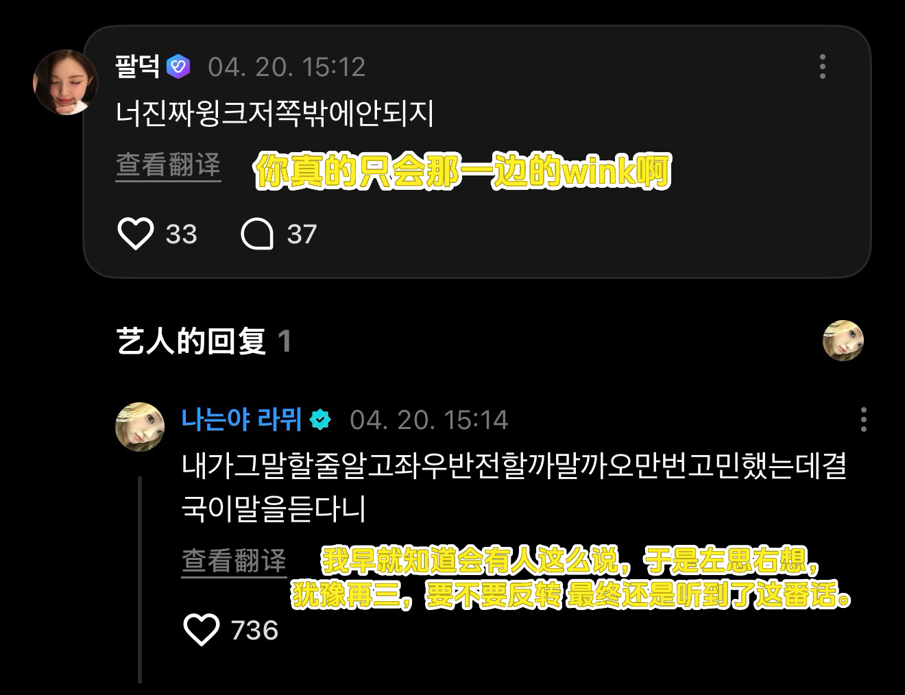 💕:你真的只会那一边的wink😉啊🐰:我早就知道会有人这么说,于是左思右想