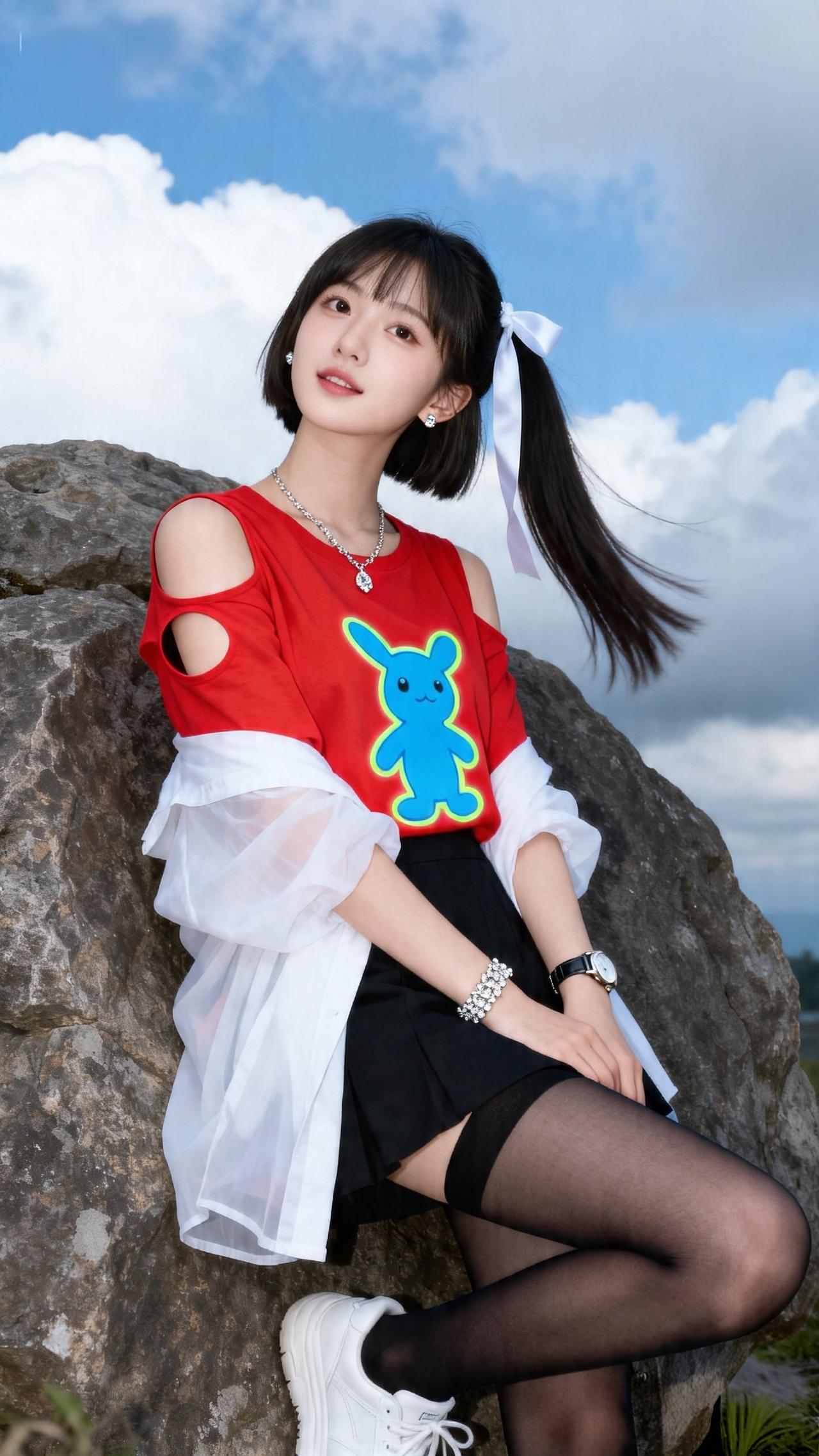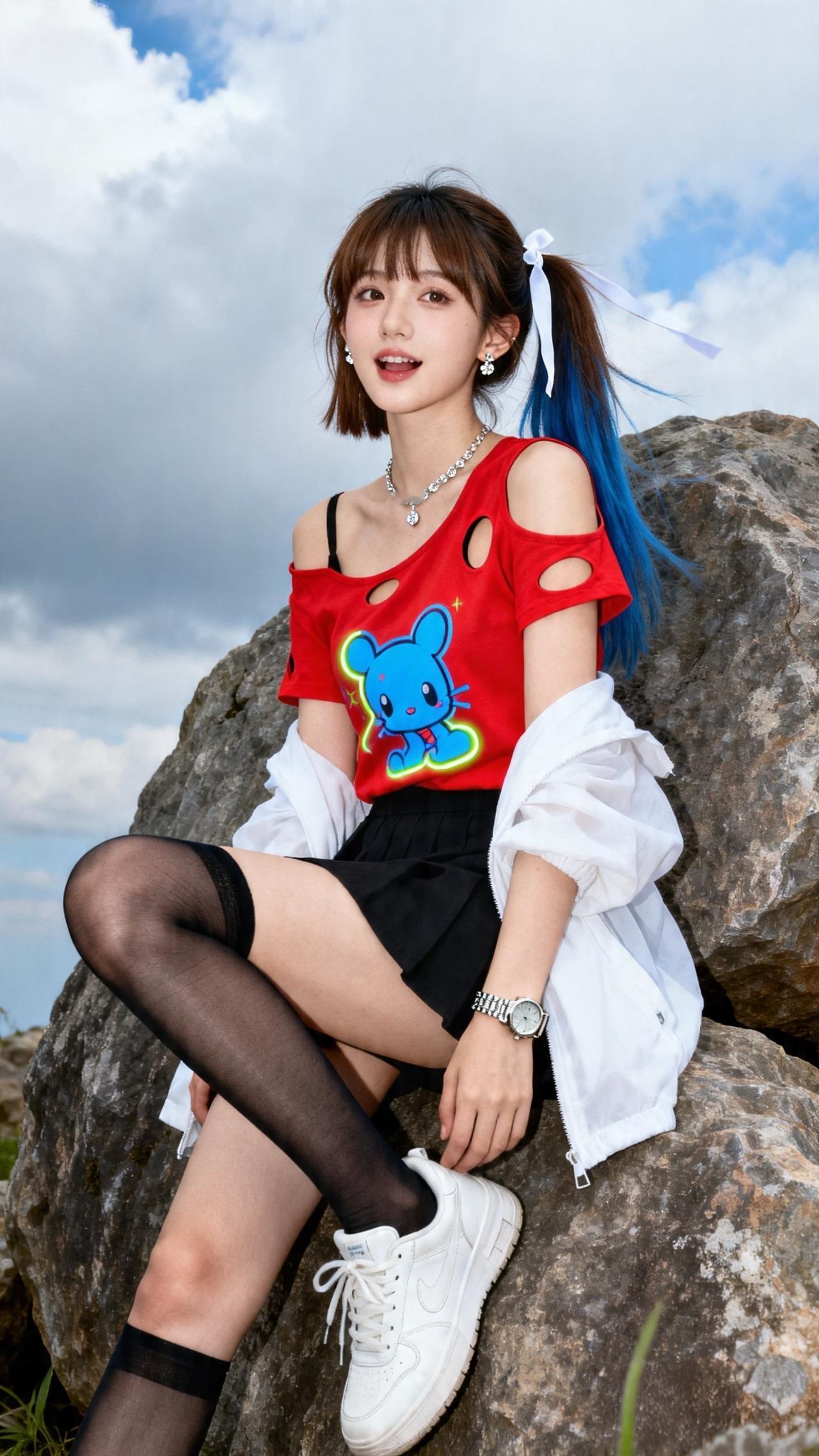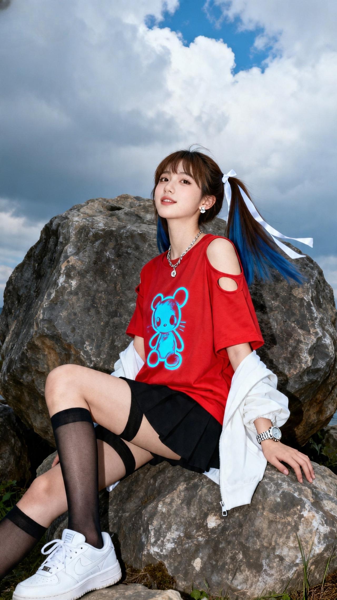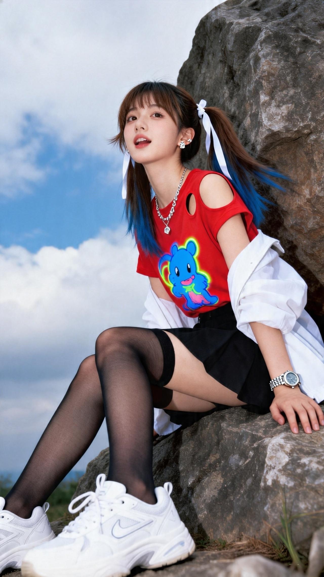 甜酷少女 元气写真 户外拍照 撞色穿搭 高马尾造型 夏日少女感 OOTD 少女写真集