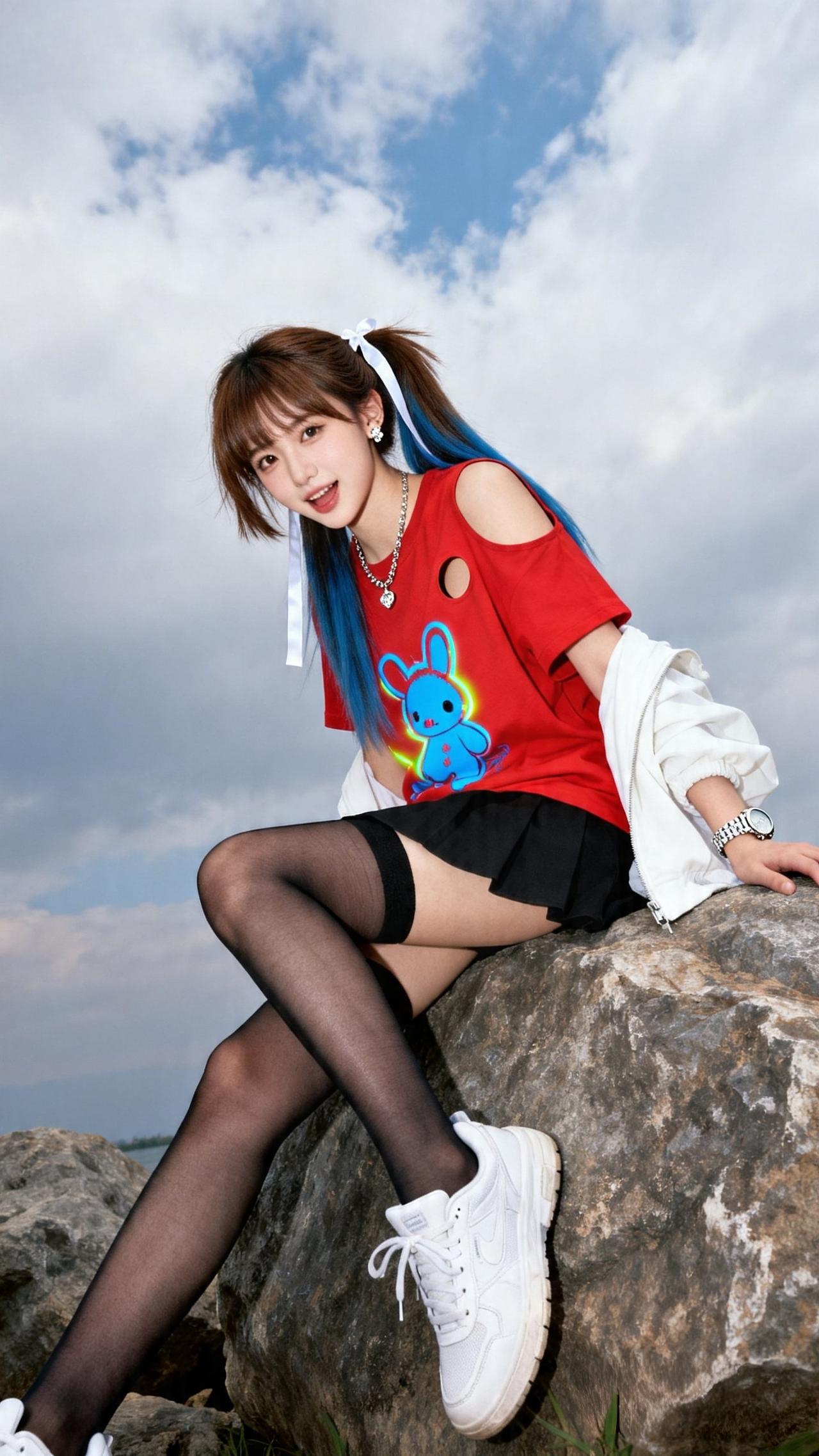 甜酷上线,元气满格 甜酷少女 元气写真 户外拍照 撞色穿搭 高马尾造型 夏日