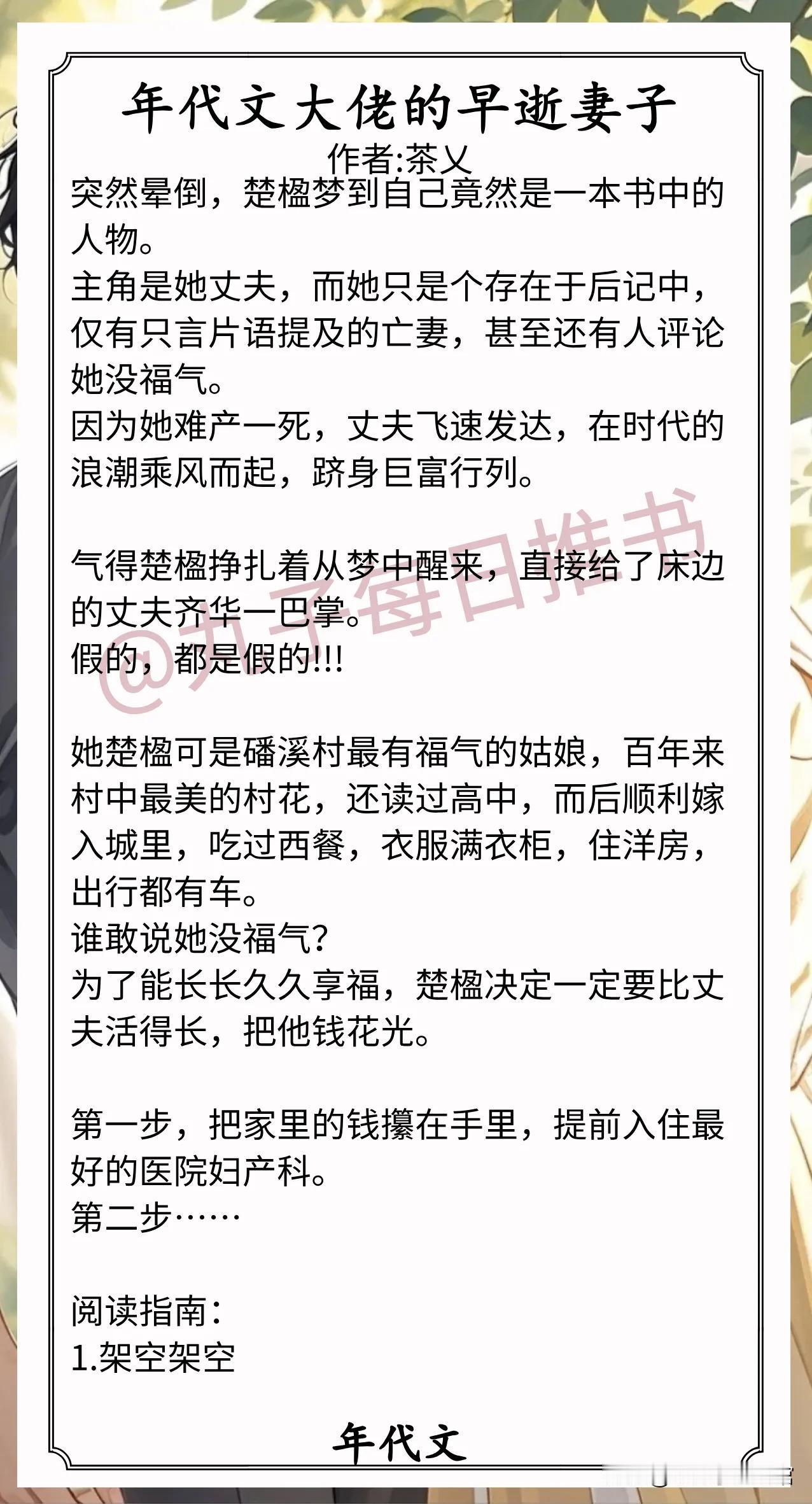 2.《年代文大佬的早逝妻子》作者:茶乂(娇俏村花vs宠妻大佬,女配觉醒,婚恋,家长里短)