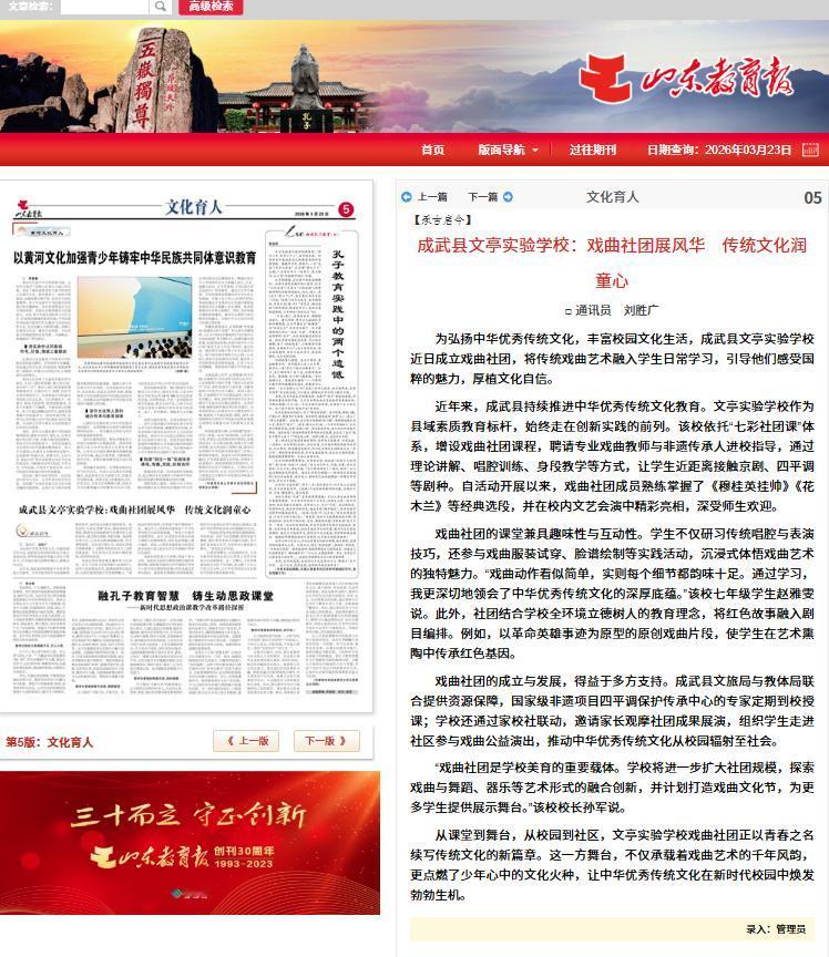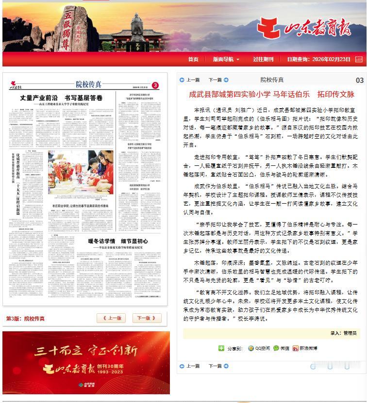 今年以来,在《山东教育报》发表了 6 篇关于成武教育的新闻通讯,从校园活动到特色