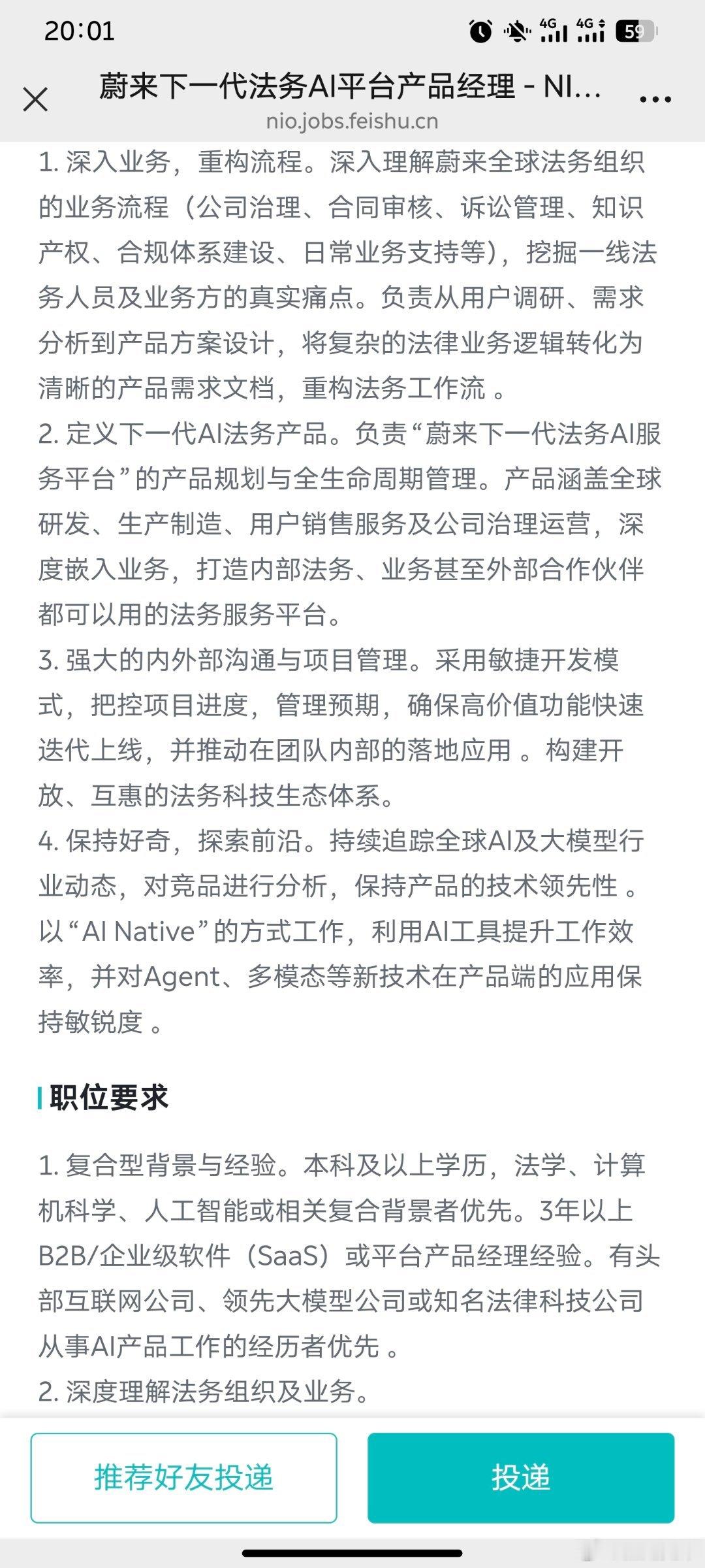 蔚来法务招聘只不过不是抓黑子的。但用来抓黑子肯定强 魔法对轰AI管理AI新能源汽车大v聊车蔚来