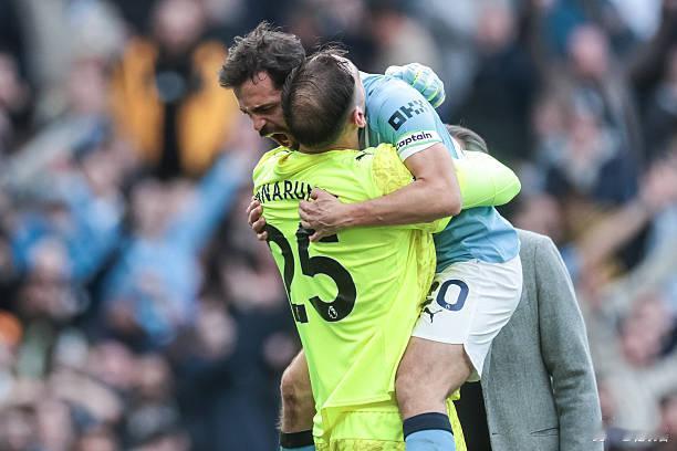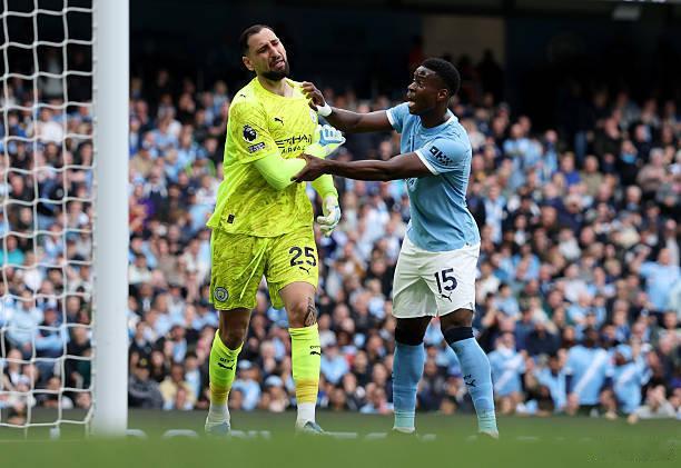 曼城2比1阿森纳 多纳鲁马出现重大失误后,格伊赶紧过去安慰门将,稳住了多纳鲁马的