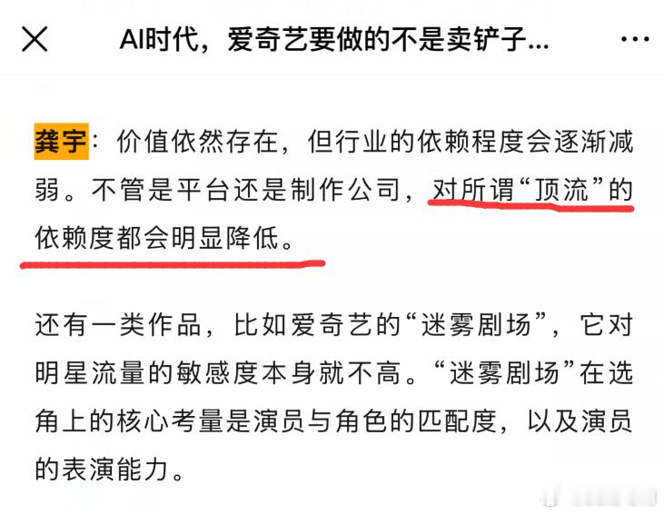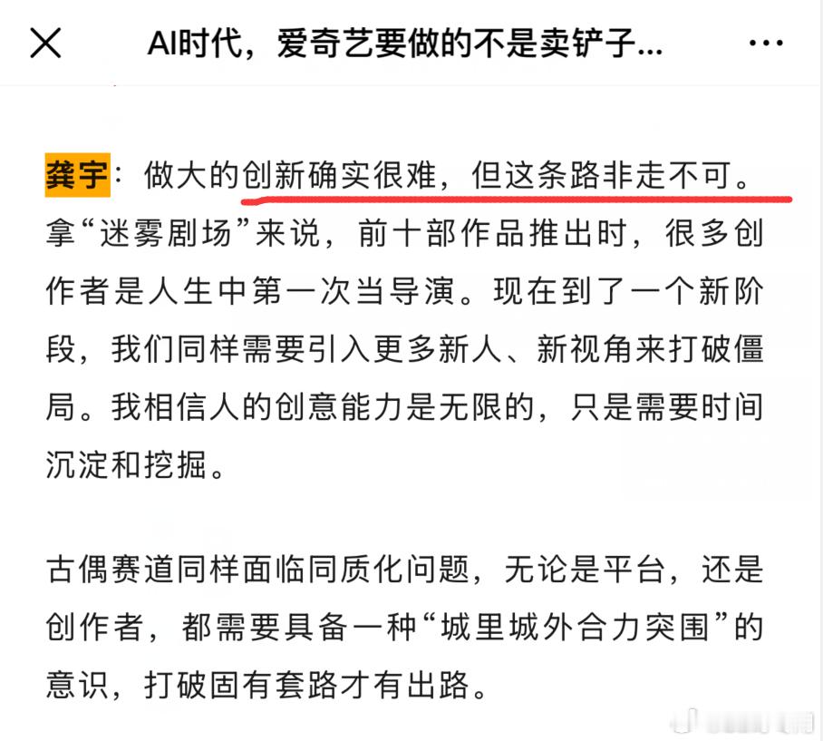 爱奇艺的CEO龚宇再次在采访中强调,必须用AI创作影视剧的决心:AI是人类最后一