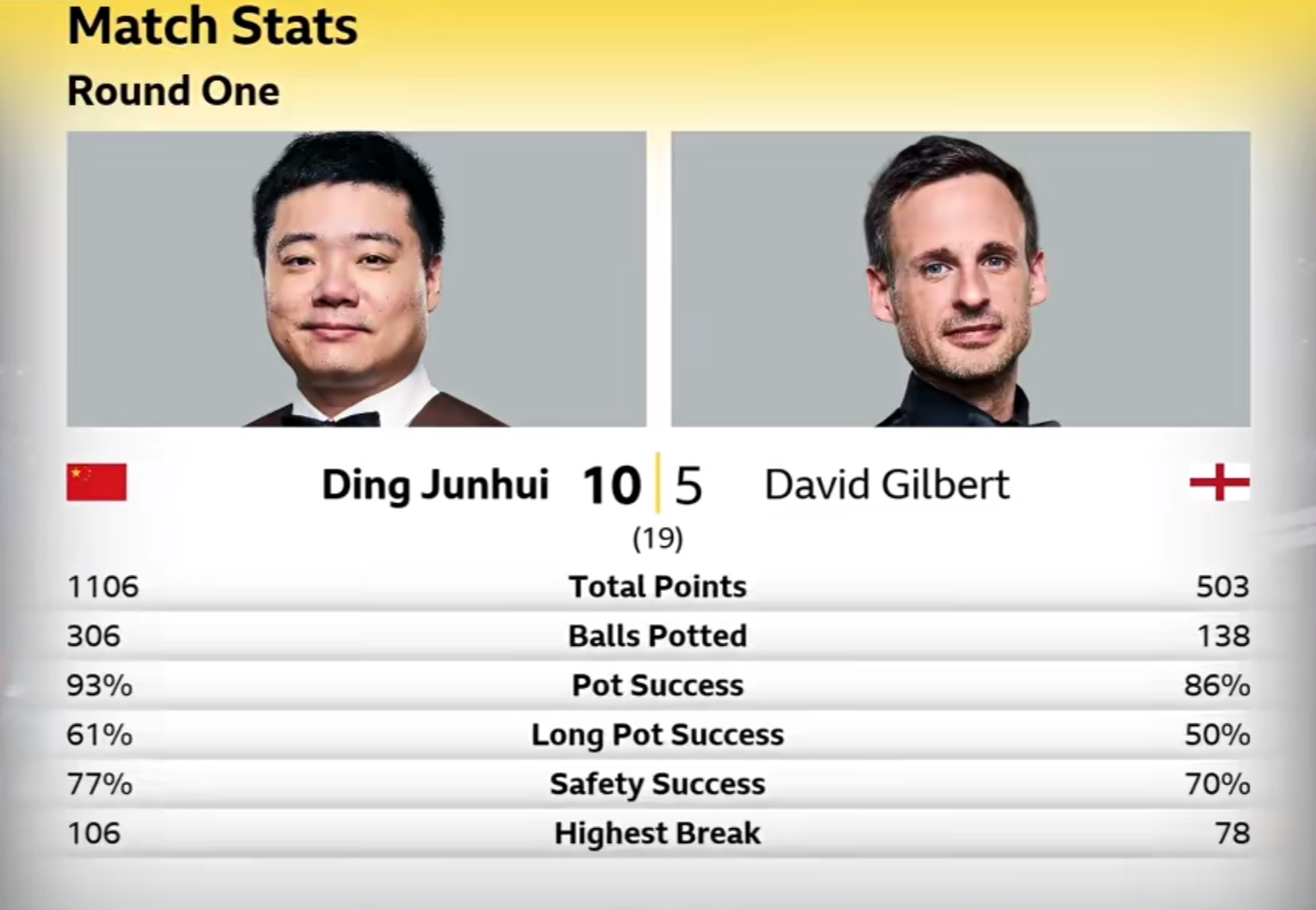 丁俊晖世锦赛开门红 恭喜丁俊晖,世锦赛首轮10比5战胜英格兰选手吉尔伯特,顺利晋