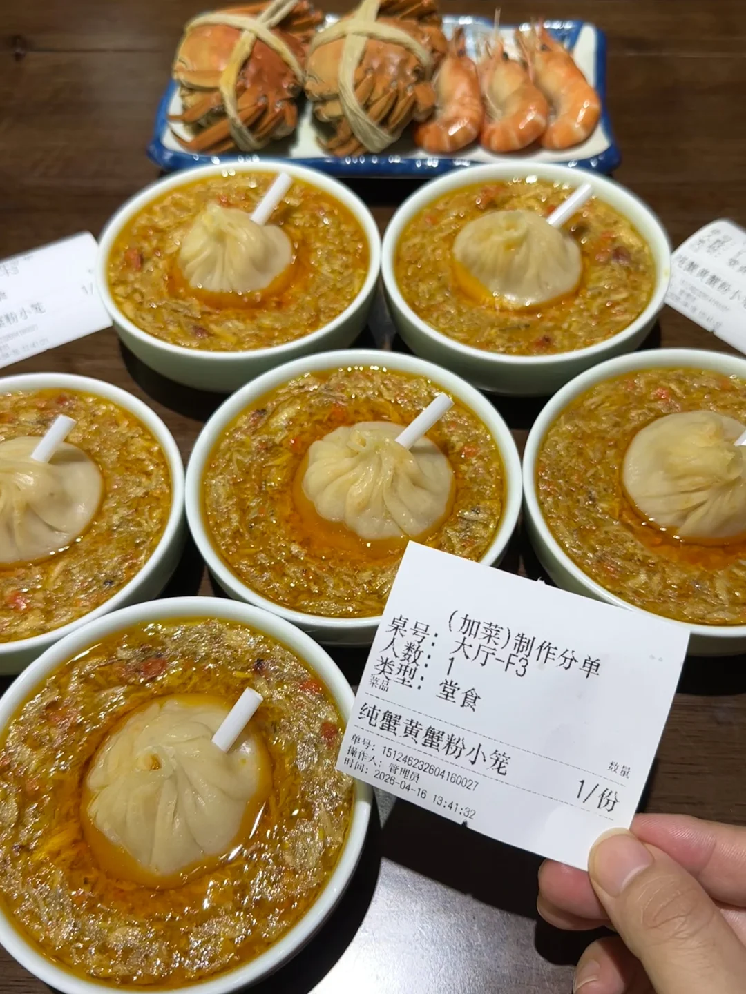蟹黄小笼一口下去鲜美的汤汁满满都是蟹肉蟹黄