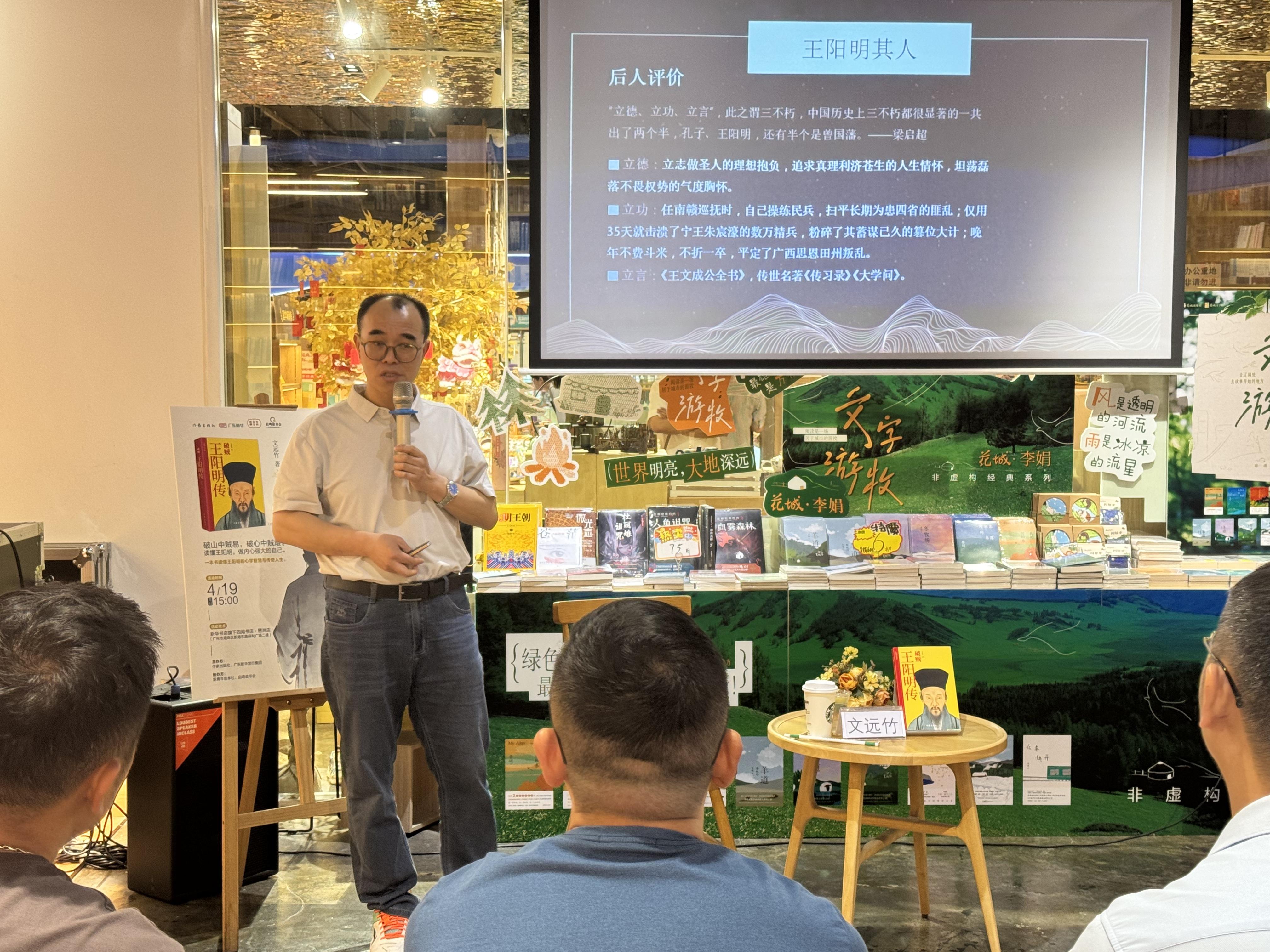 作为“灯塔计划:终身学习,人人出彩”的一项活动,4月19日下午,一场以“面临内心困惑·读阳明获力量”为主题的新书发布暨读者分享会在广州四阅书店·琶洲店举行。由作家出版社重点推出的《破贼:王阳明传》在此首发,吸引了大批读者与心学爱好者到场。