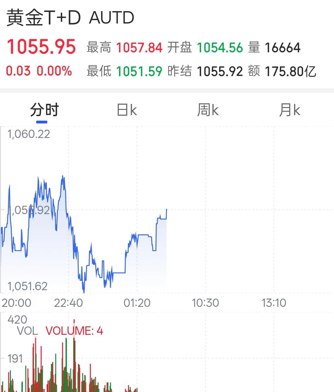 今天是2026年的4月21日,星期二,现在是早晨6点钟。当前的金价是1055元每克,最高开1057元每克,最低开1051元每克,开盘是1054元每克,昨结是1055元每克。这是昨天晚上的收盘数据。这数据和昨天早晨相比,黄金价格每克上涨了两元钱。今天凌晨黄金价格是1053元每克。