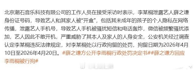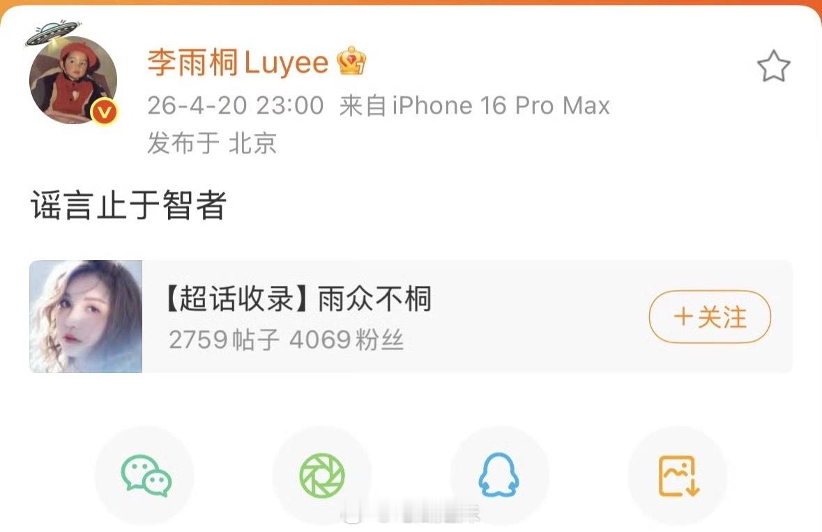 李雨桐疑似回应被行拘 李雨桐疑似回应被行拘,被曝行拘后深夜首次发文:“谣言止于智