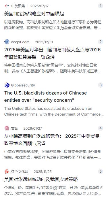 除了科技竞争,美国对中国的围堵还体现在方方面面。经济上,美国持续加征关税,2025年还推出了“对等关税”政策,引发了一场全球贸易风波。科技上,美国不断扩大实体清单,把越来越多中国高科技企业列入黑名单,在半导体、人工智能、量子计算等关键领域全面收紧出口管制。军事上,美国在印太地区大搞军事化布局,联合日本、韩国、澳大利亚、菲律宾等国搞各种安全机制,说白了就是要在中国周边织一张围堵网。