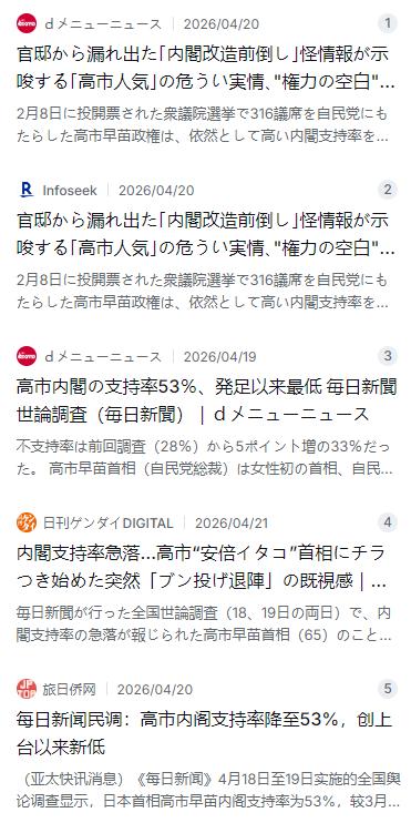 万万没想到,日本的报应这么快就来了!根据日媒透露,高市内阁支持率下滑了5个百分点,目前已经降至53%。