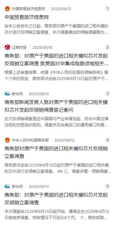 最近这段时间,在国际舆论场上,特别是俄罗斯媒体那边,关于中国芯片反击的话题炒得挺热。事情源于9月中旬中国商务部的一纸公告——从2025年9月13日起,对原产于美国的进口相关模拟芯片启动反倾销立案调查。