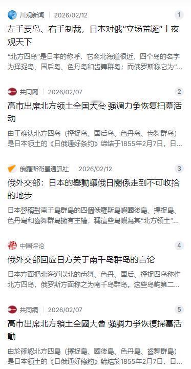 所以回头看看这个局面:俄罗斯死守不放,岛上的军事部署一年比一年扎实;日本嘴上说要要要,可手里既没有足够的筹码逼俄罗斯让步,连美国这个铁杆盟友都不愿意在争议问题上真正站台。硬实力掰不过手腕,和谈的路子又早被俄罗斯自己堵死了。这几个岛就像一把枪,俄罗斯攥在手里,隔三差五还得上上膛。真要说谁能把中日之间的冲突“一瞬间解决”,恐怕有点夸张。但要是把视角放宽一点,这几个争议岛屿就像一根结实的楔子,钉在东北亚的地缘棋盘上,让俄日之间的结构性矛盾根本没法回避。俄罗斯靠着二战后的国际安排和实打实的控制力占住了地盘,日本这边既有历史法理背书又有美国盟友撑腰,两边谁都不可能先松口。一个“无解”的局面,往往比一触即发的冲突更能锁住局势——谁也别想轻易打破这个平衡。