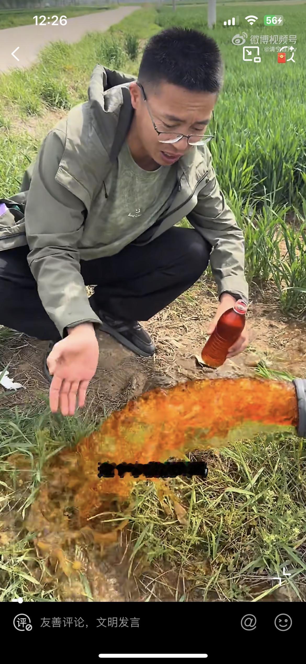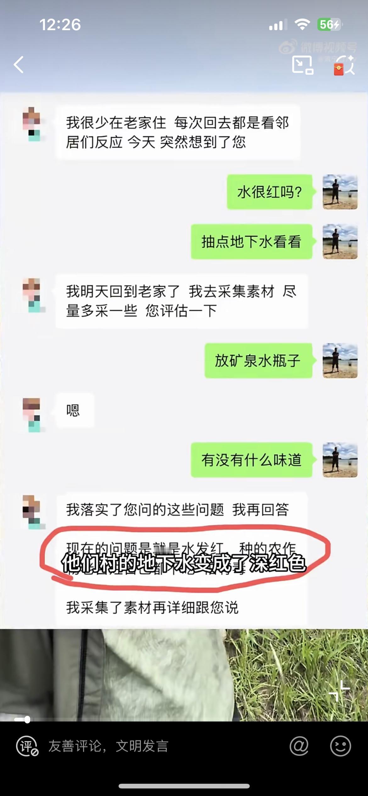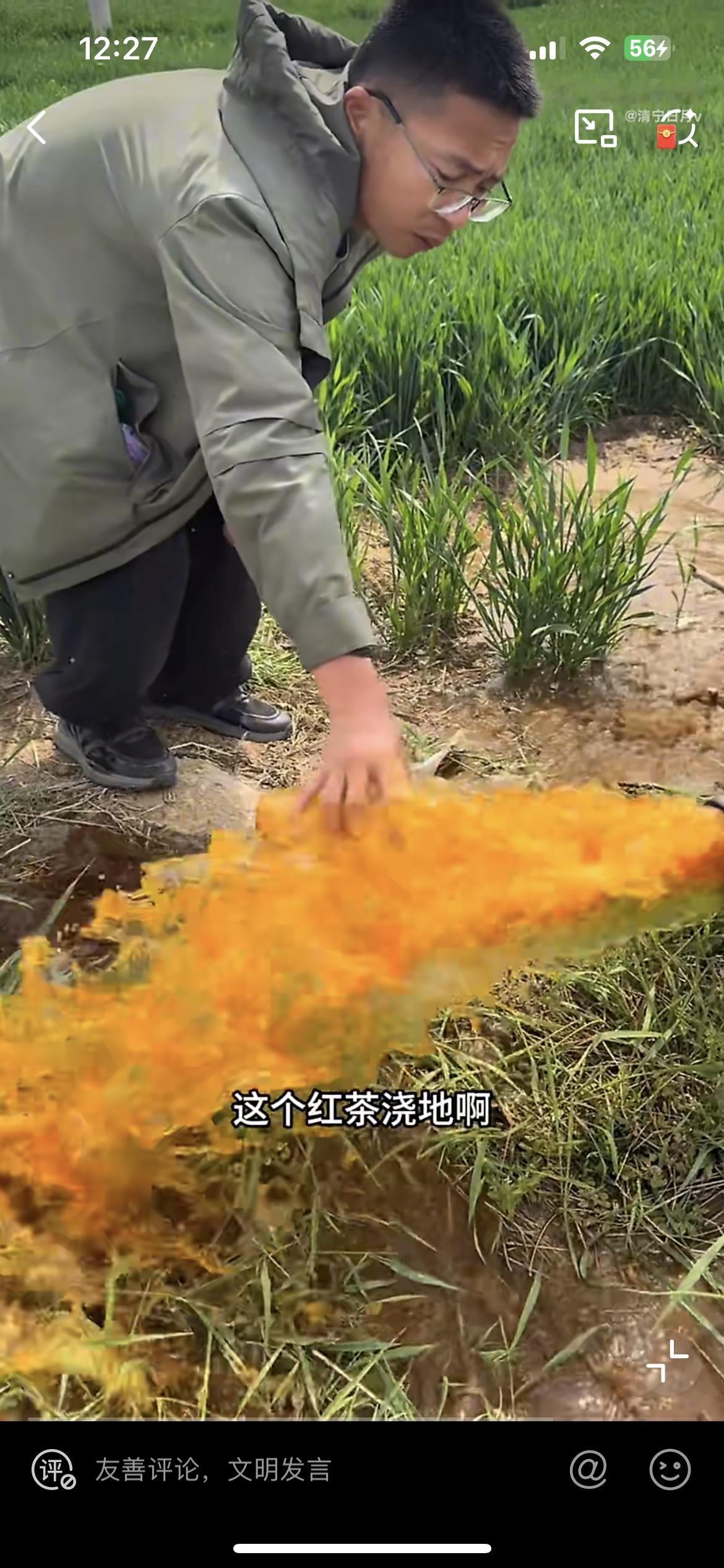 环保博主齐哥又搞大事情,在河北保定蠡县一村庄曝光地下水疑似污染问题,村民种出的小麦自己不敢吃,全部卖出去了。他接到粉丝爆料,说当地的地下水呈现铁锈色、深红色,有点像饮料水。鱼猎奇哥现场一探究竟,让村民打开地下深达 70 米的水井,抽出来的水简直让人不敢相信,竟然像冰红茶,正常来说这个深度打出来的地下水应该是纯净透明,非常清冽干净,可是这个水像被染了颜色。目前不清楚这种水到底是什么成分,村民用此水浇灌的小麦,自己不敢吃,全部卖出去了。流通出去的小麦磨成面粉到底最终还是流向了百姓餐桌,这不就是典型的互害吗?