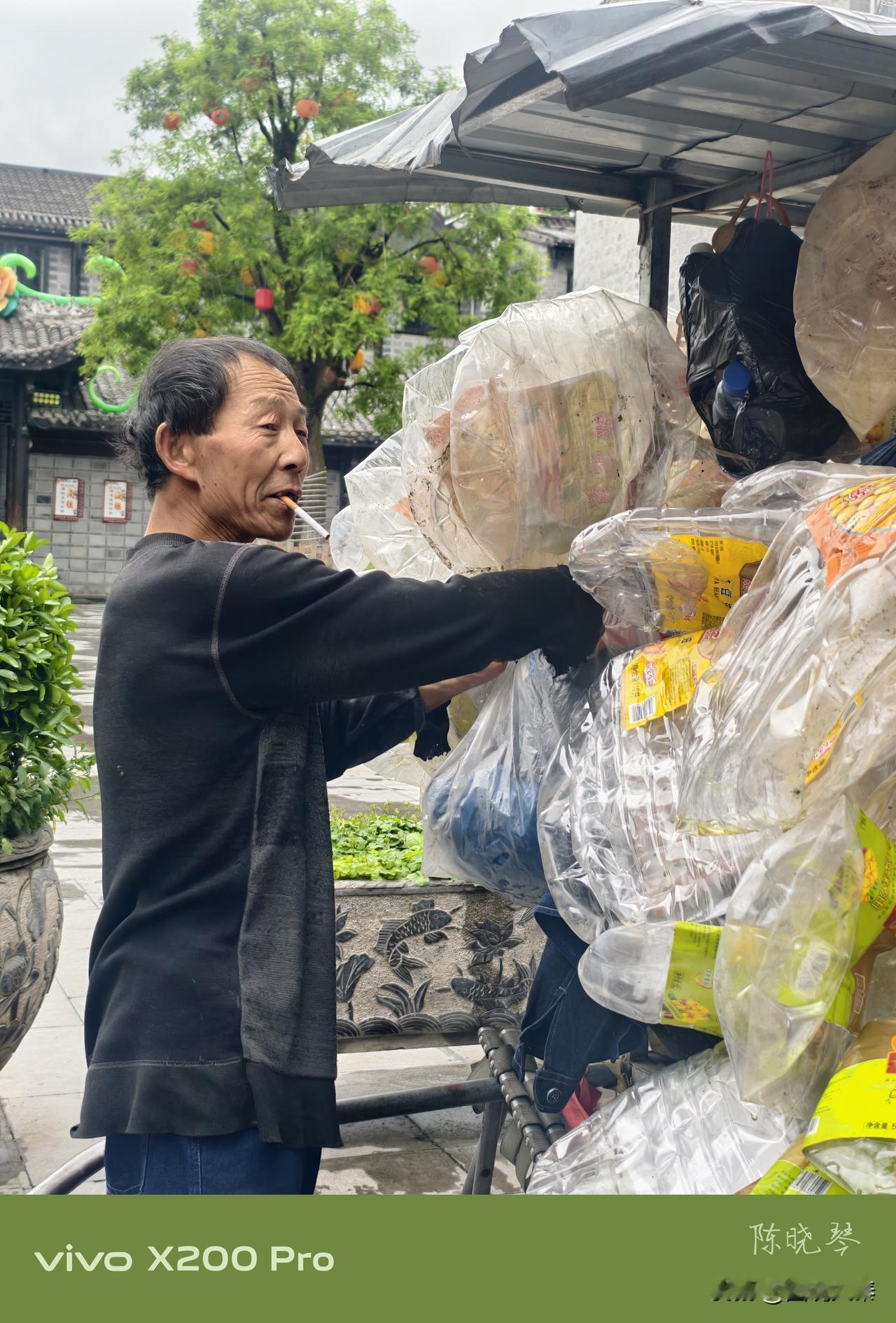 何师傅,今年65岁,每天靠捡垃圾为生,一个月能挣2千块钱左右,老板在爱心学堂当志愿者,有儿有女有孙子,身体好,就是好日子