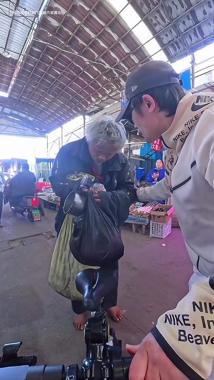 帽子哥给乞讨大爷买了吃的,买了鞋,这才是精准扶贫!我们不要口号,我们来点实在的!