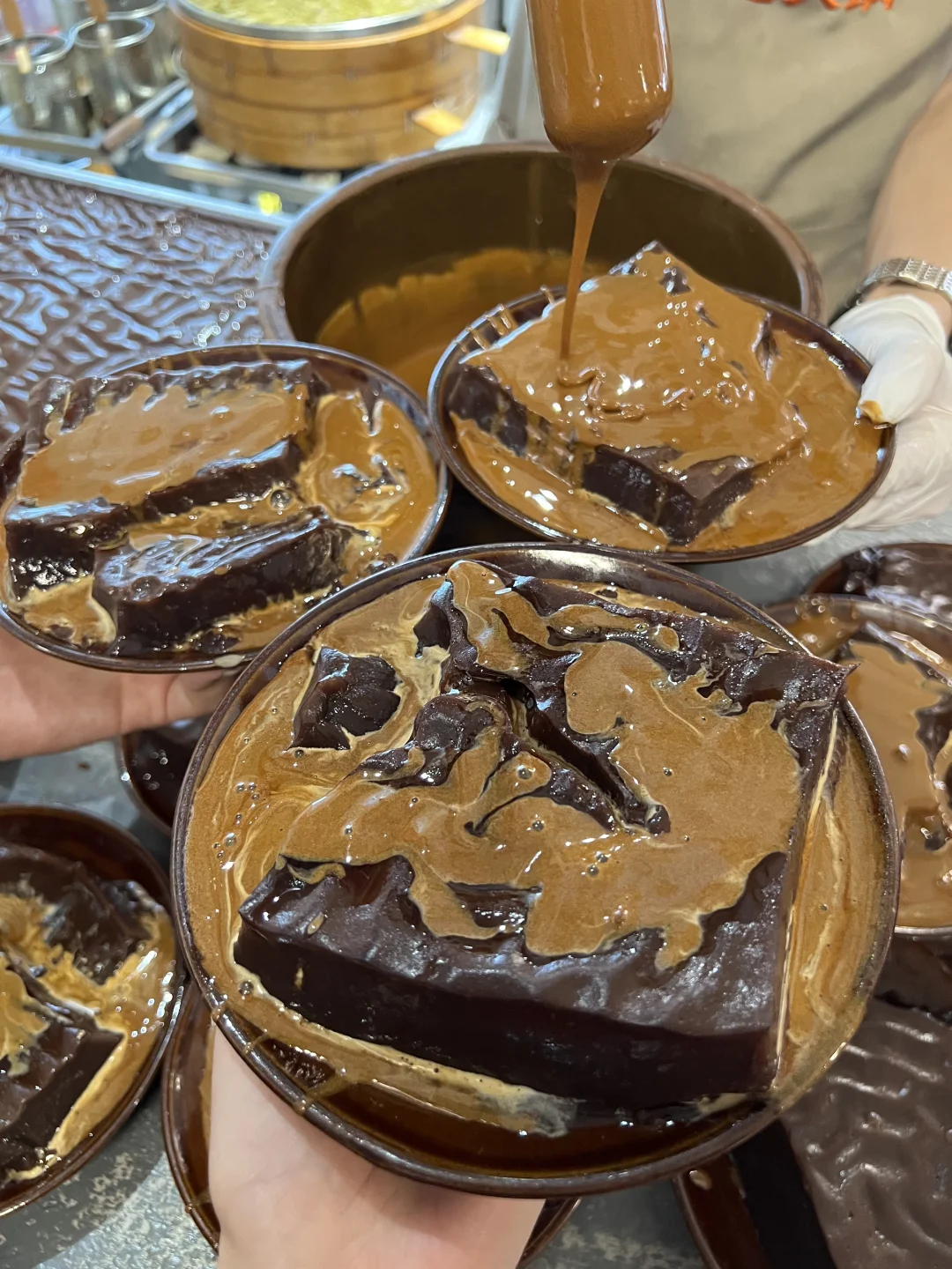 黑米凉糕看着奇奇怪怪,吃着是真的爽,糯糯的口感,淋上翻沙红糖,夏天来一碗,真的太爱。冲冲糕也好吃,软糯香甜。
