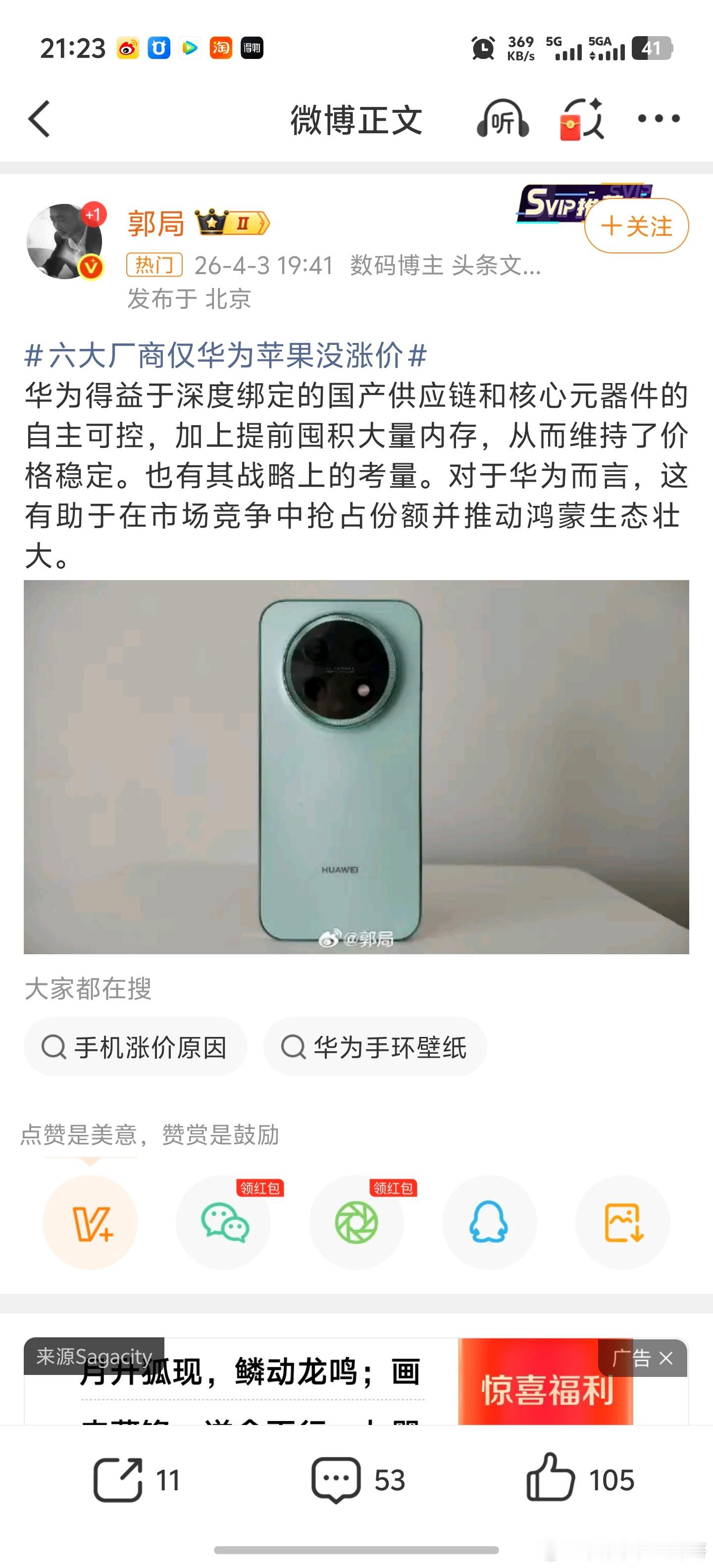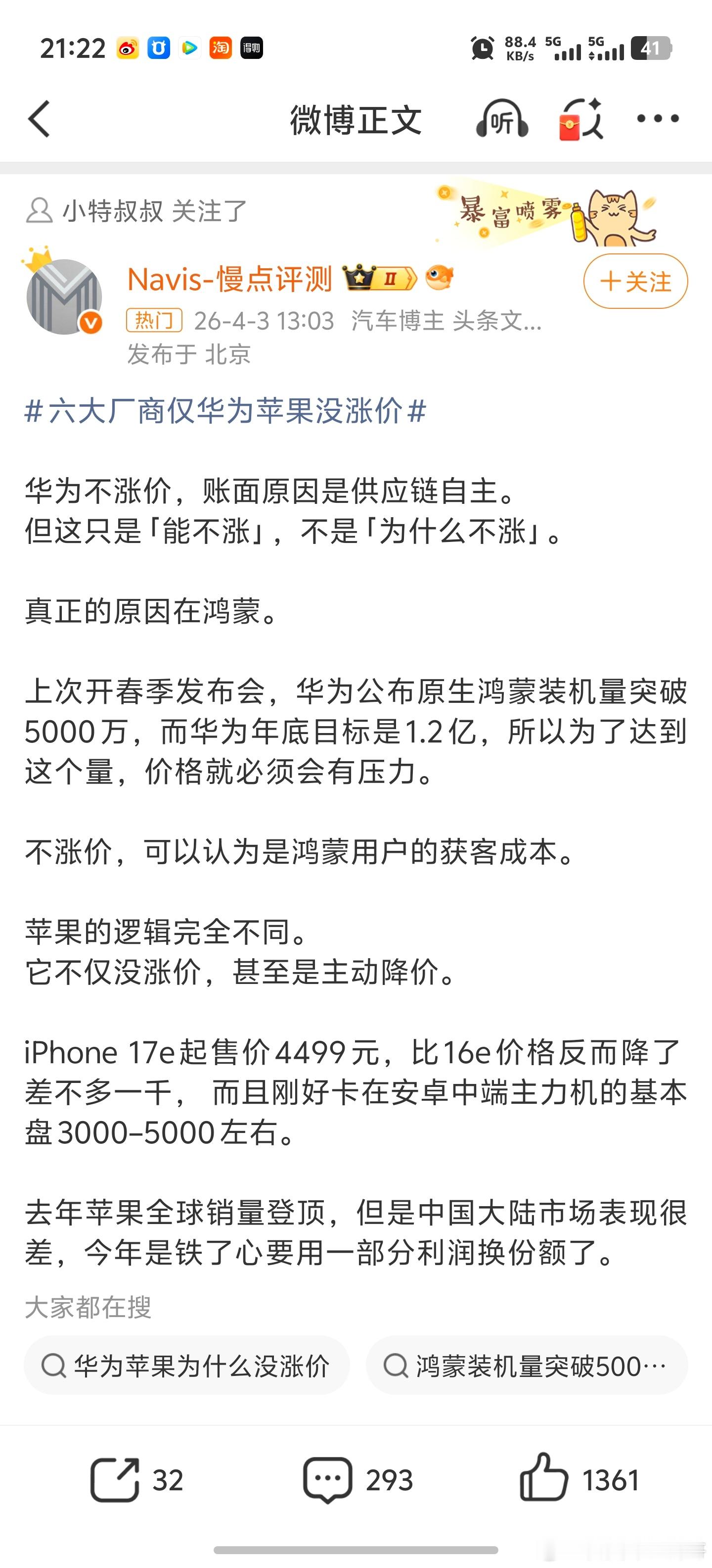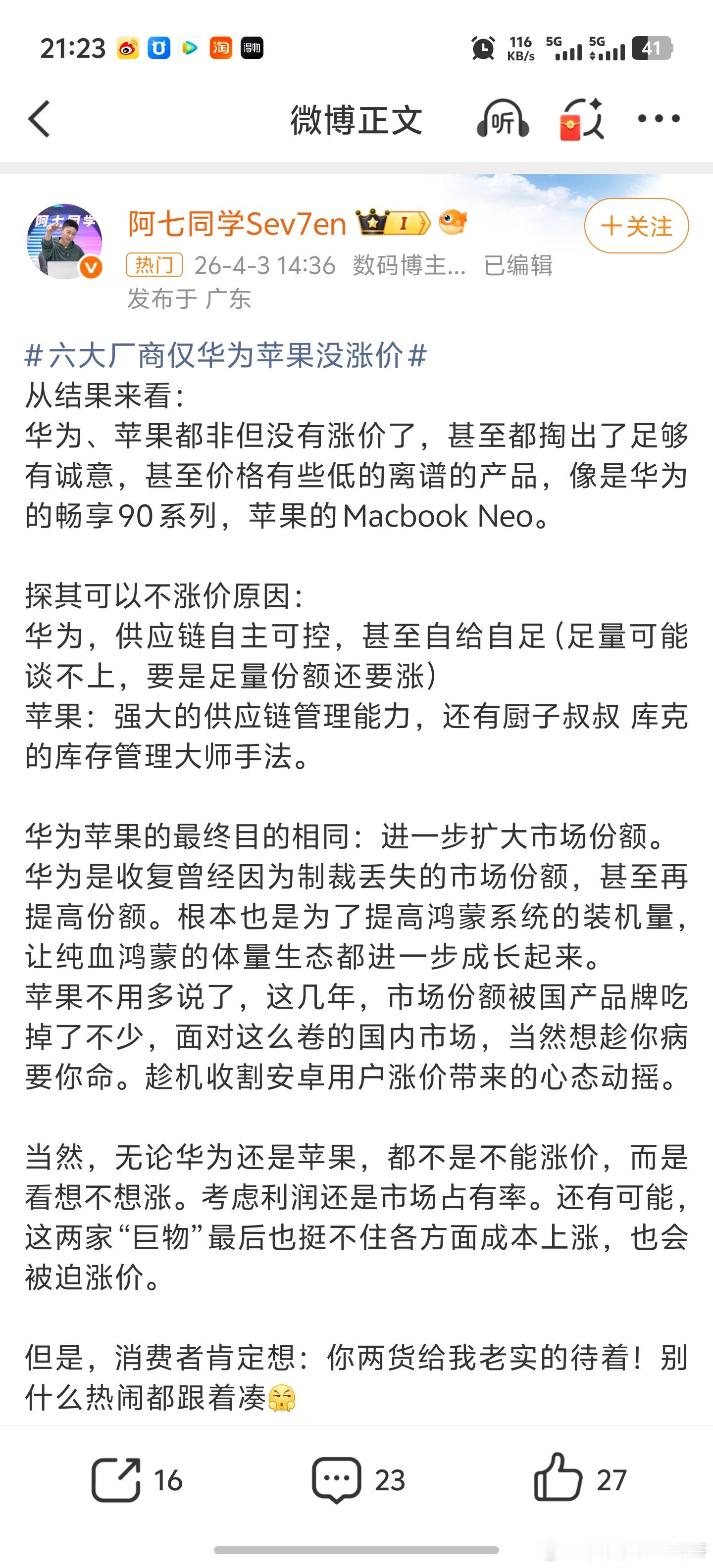 华为确实没说过不涨价但上个月倒是大面积地去说这个事情。而且文案千篇一律。