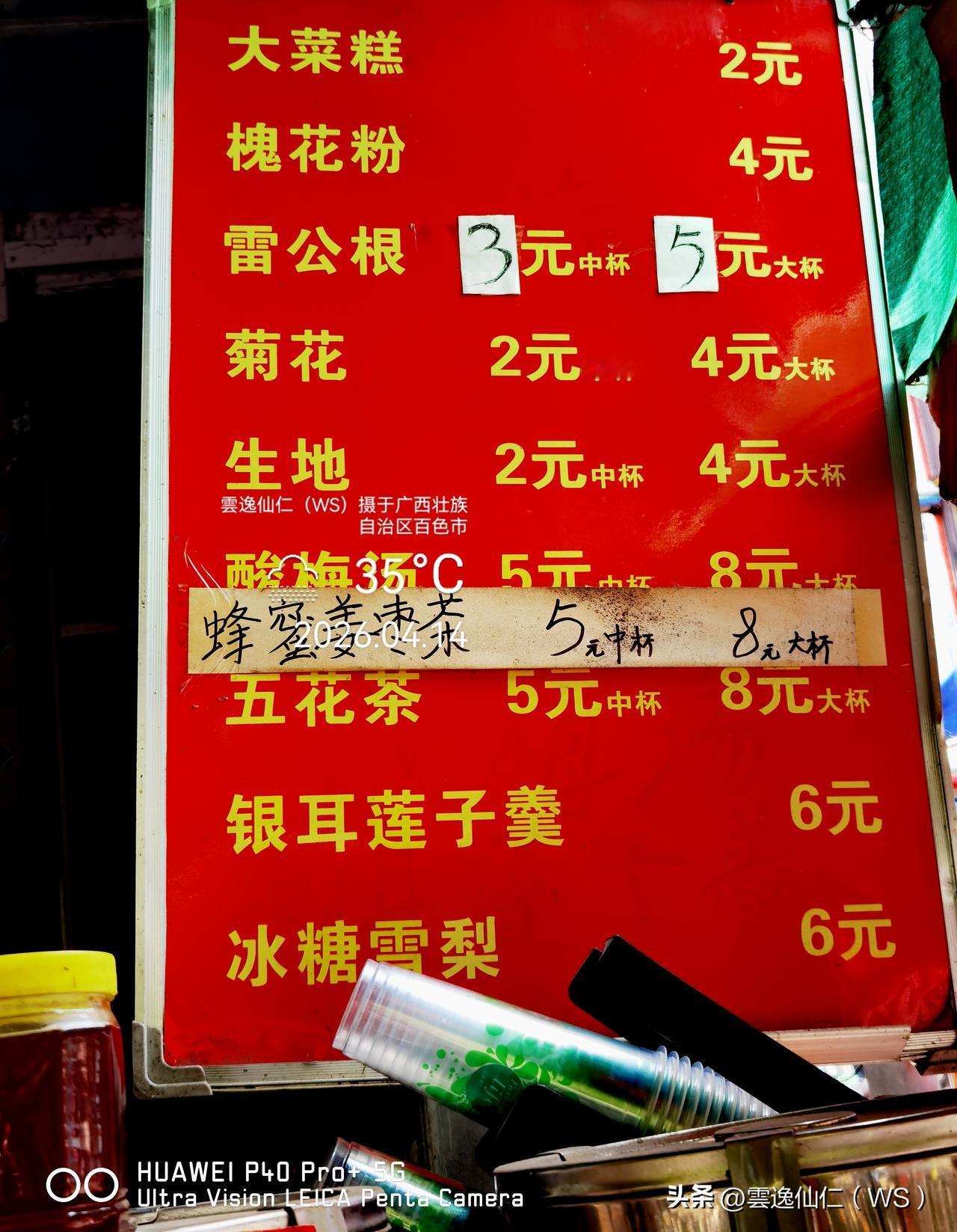 旅居生活记录(9515)广西壮族自治区百色市(200)品尝小吃52:白切鸡粉(8元2两)、生地茶(4元1大杯)、绿豆沙冰(3元1杯)、青汁牛奶(2.4元1袋/180克)、纯牛奶(1元1盒/250ml,还有25天到期)。
