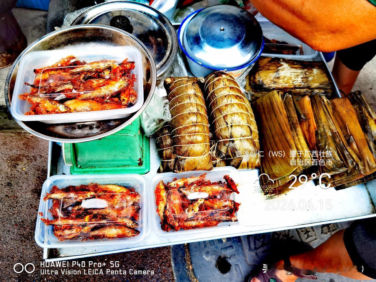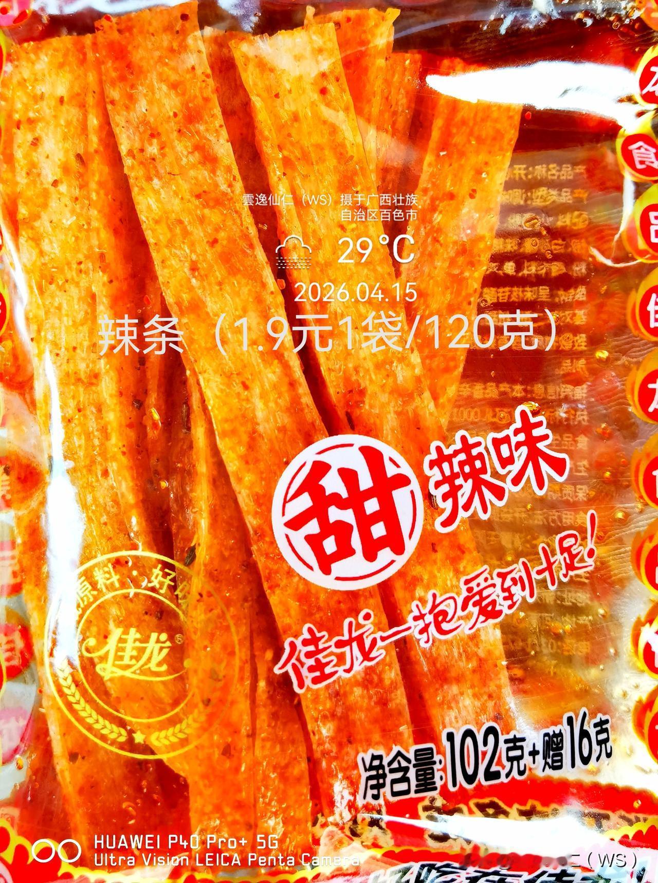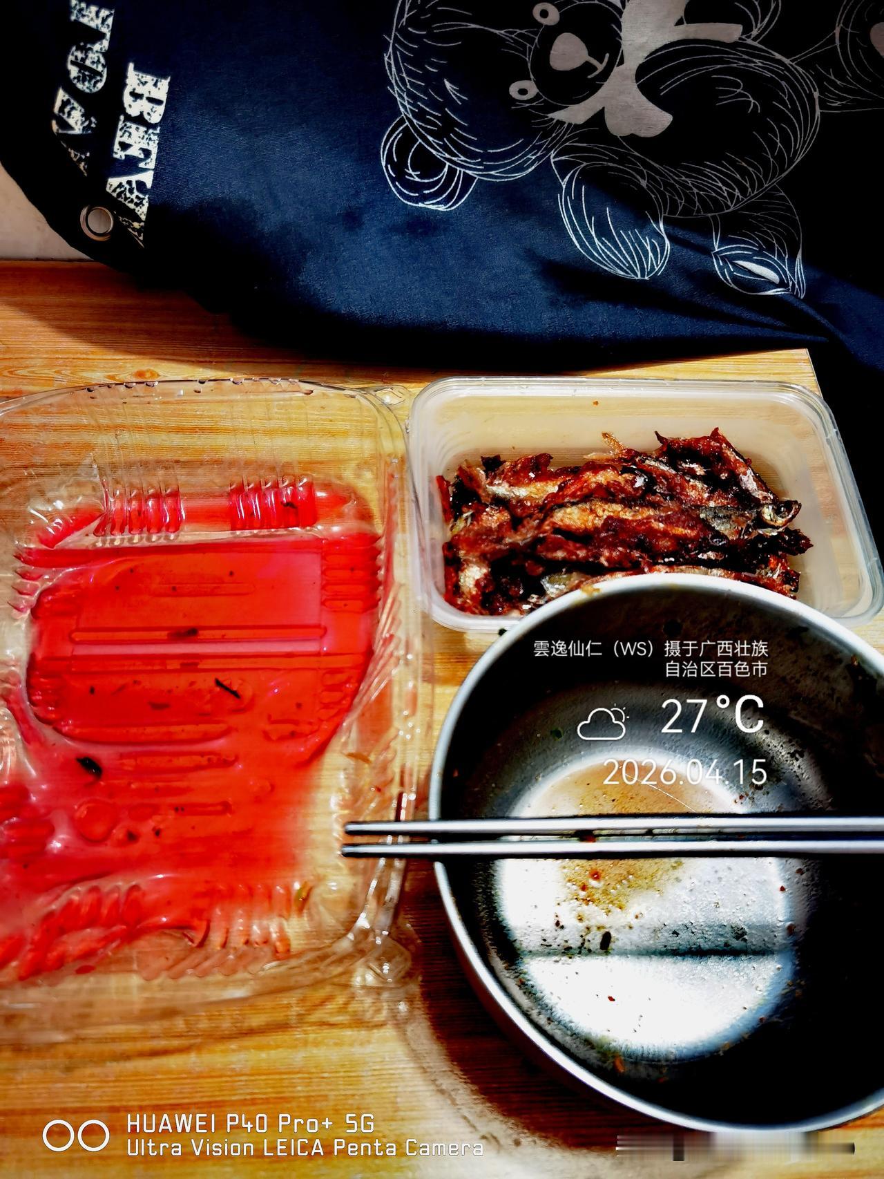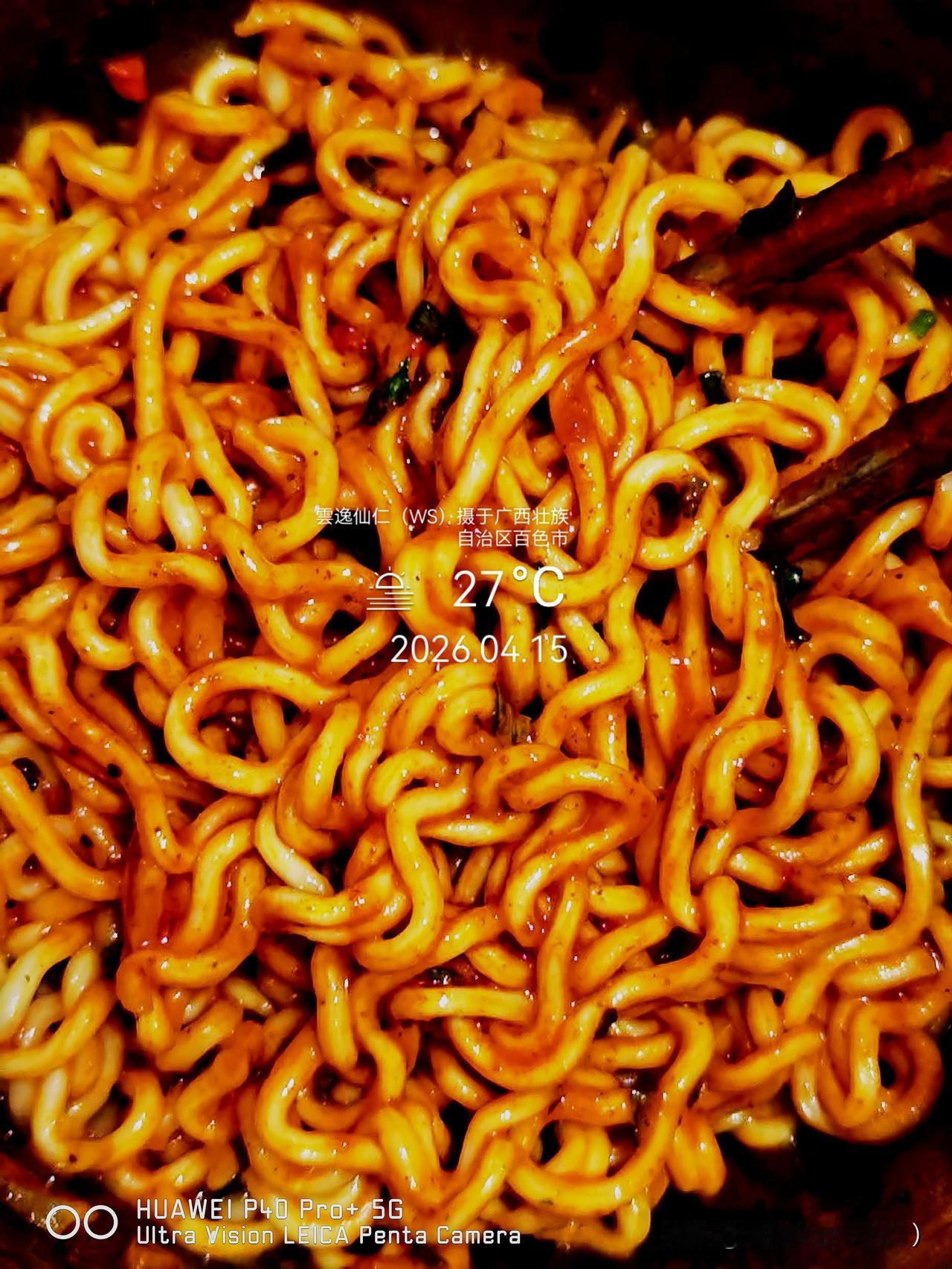 旅居生活记录(9530)广西壮族自治区百色市(216)品尝小吃54:斑斓粉(3元1杯)、DIY红苋菜(3元1把)北部湾咸鸭蛋黄拌面(1.98元1袋/110克)+油炸小河鱼(10元1盒)、辣条(1.9元1袋/120克)。