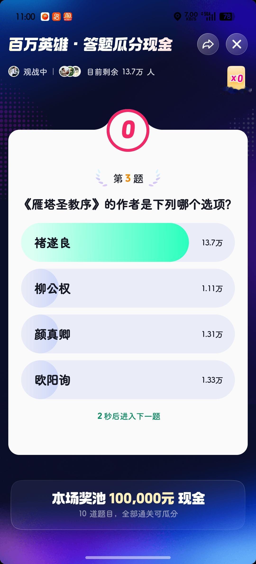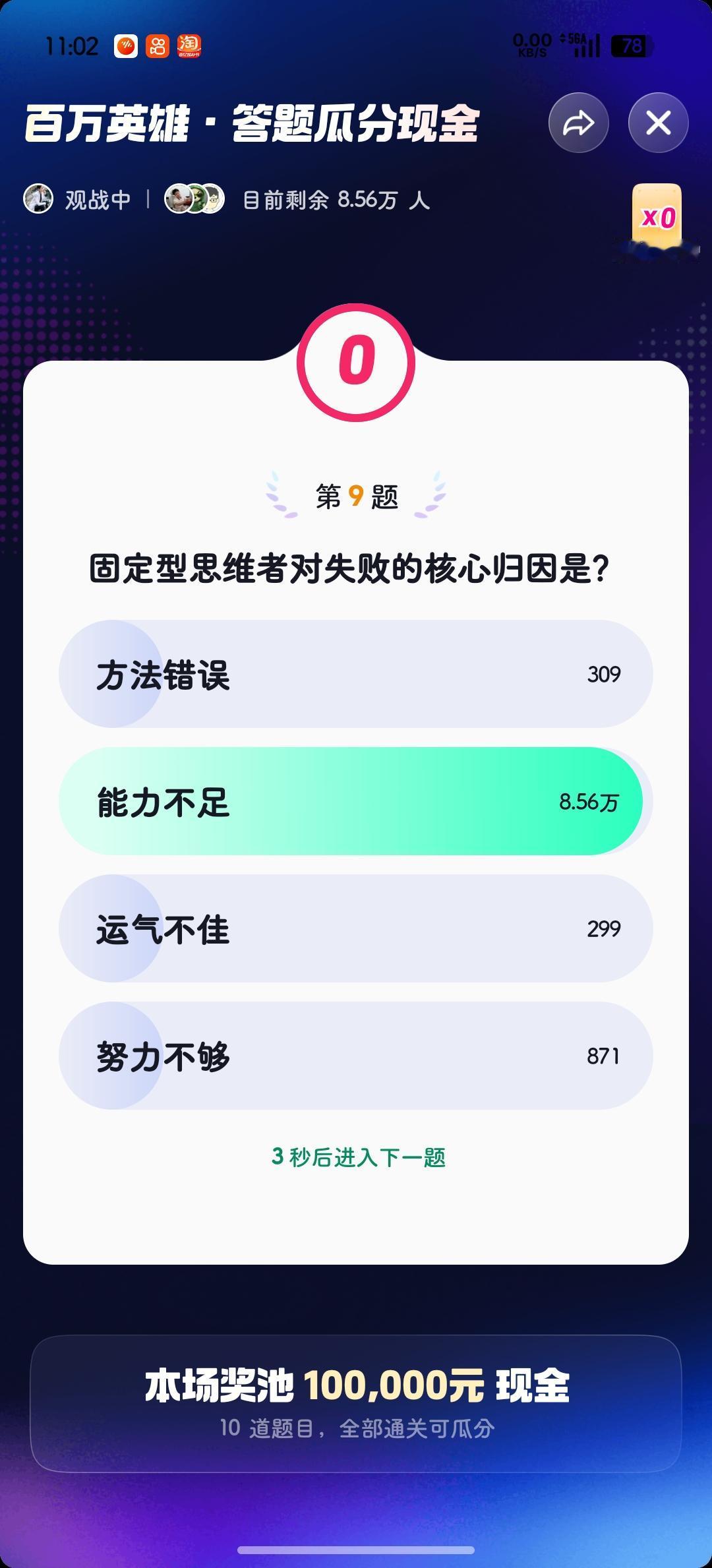 今天早场答题结束🔚 不出意外还是两道题 就给我干趴下了…[捂脸] 照说不