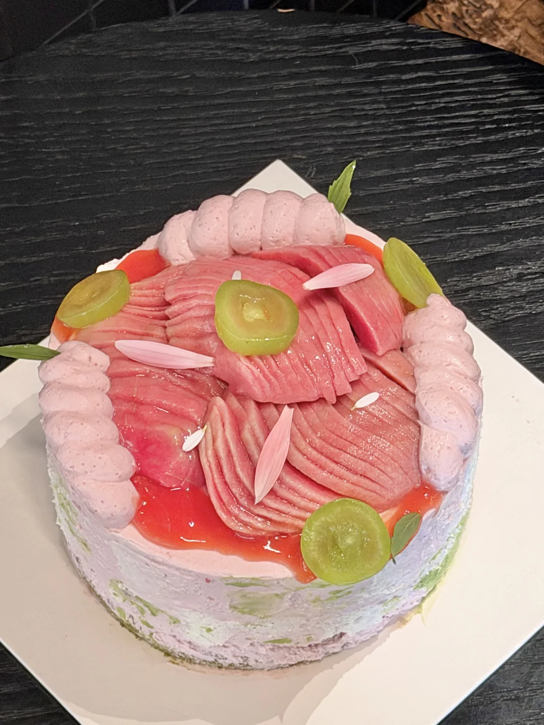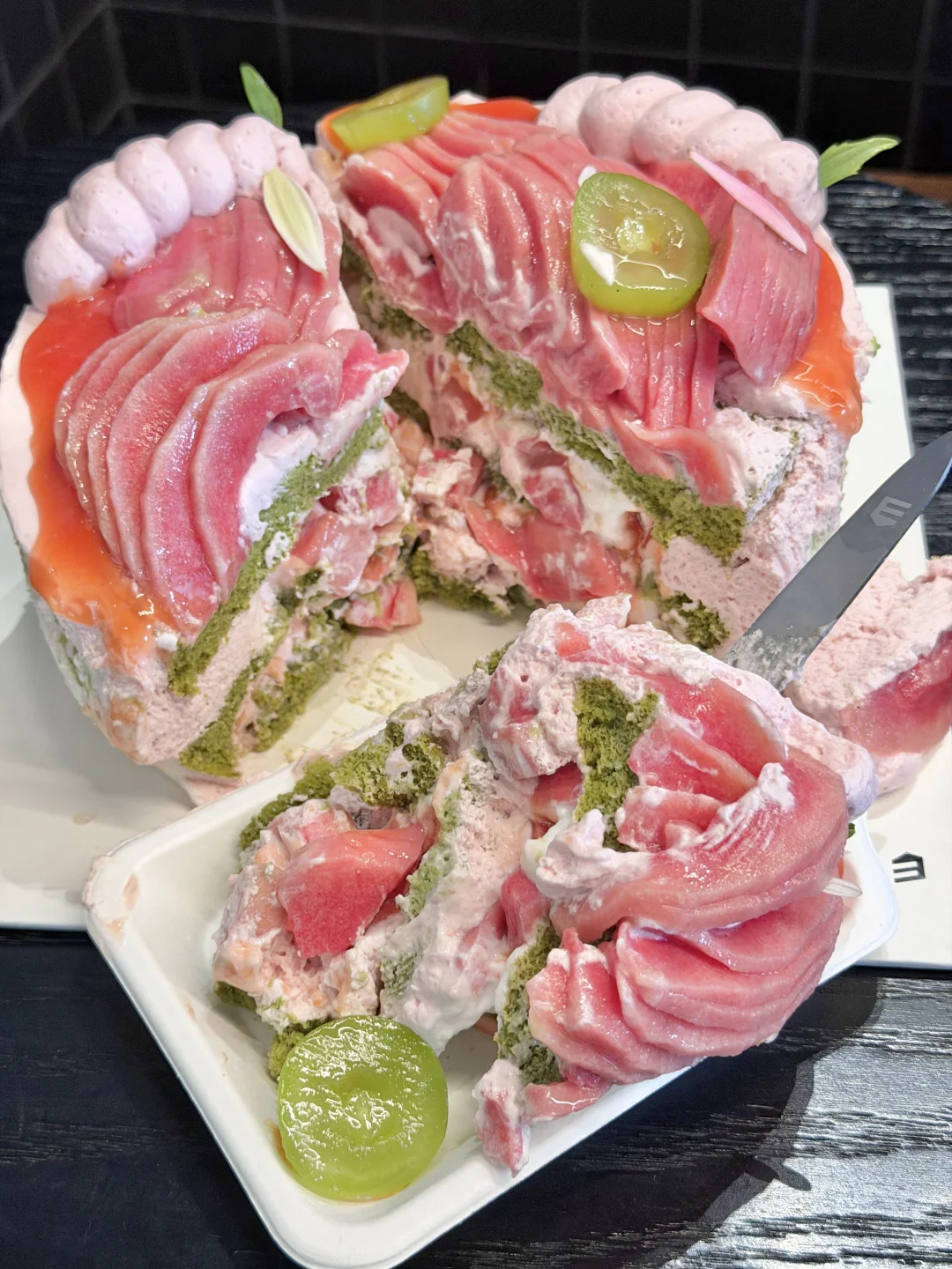 提前定了一个芭乐蛋糕真的爱惨了!!!超多新鲜芭乐果肉!!底下的蛋糕胚很绵软!!真的不是那种冷冻后再解冻的!!才100出头!!!👛一点也不心疼