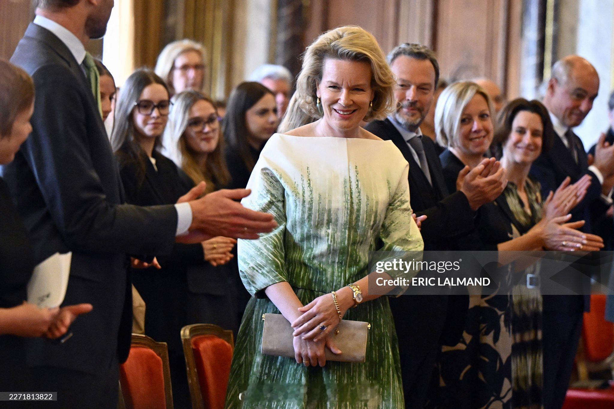 4.21 比利时王后玛蒂尔德出席颁奖礼,裙子来自natan