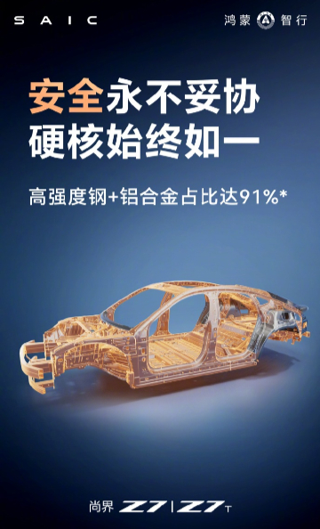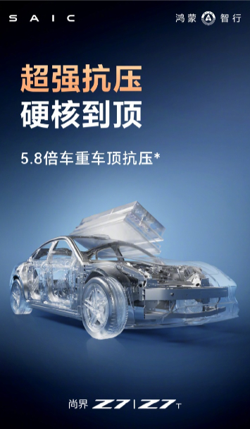 【鸿蒙智行尚界 Z7 / Z7T 预热:全系标配十三横五纵车身架构、5.8 倍车重车顶抗压,4 月 22 日发布】鸿蒙智行今日继续预热尚界 Z7 / Z7T,此次重点介绍了新车的安全配置:全系标配十三横五纵车身架构,支持 5.8 倍车重车顶抗压,拥有 14 处 2000MPa 热成型钢加强等。