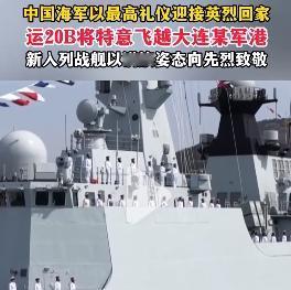当接迎第十三批在韩中国人民志愿军烈士遗骸的中国空军运—20B专机,进入我国领空后,会从旅顺港的正上方经过,人民海军首次以最高礼仪迎接英雄回家。