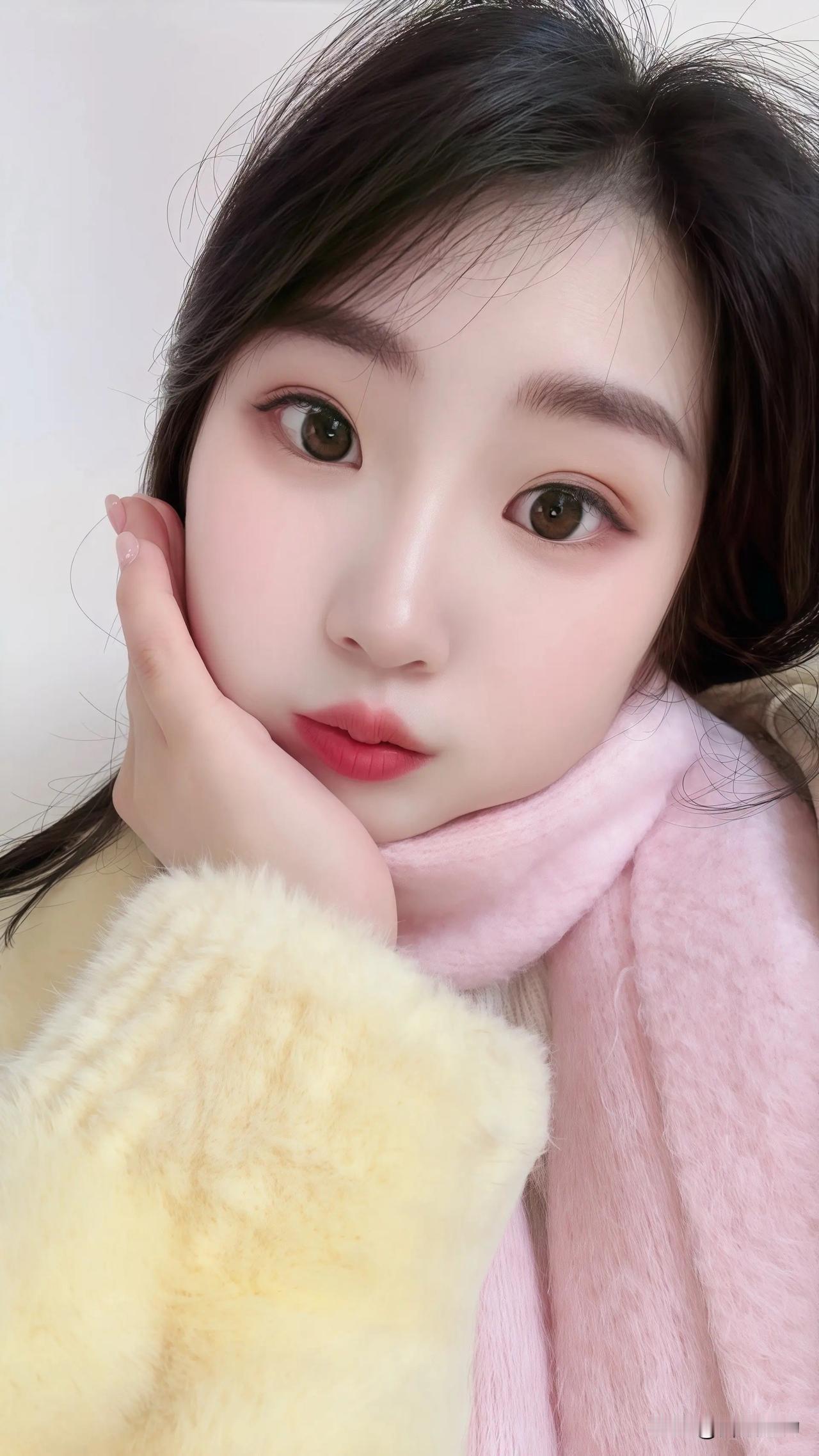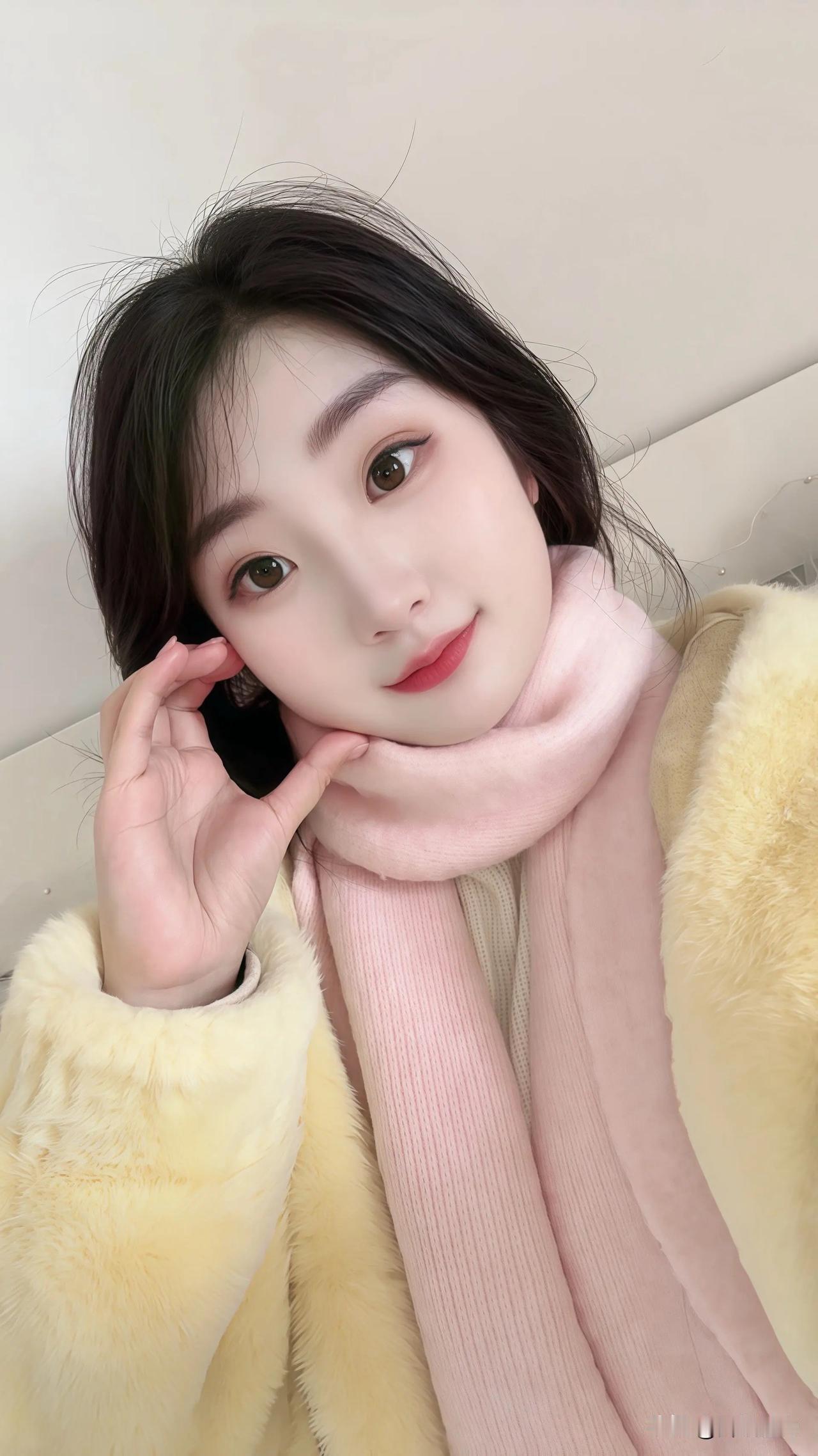 闺蜜歪头托腮的样子也太乖了吧!眼尾带着点软意,整个人都冒着温温柔柔的粉调,像冬日里晒着太阳的小甜豆。