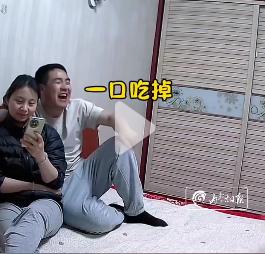 (小女孩把吃的递给爸爸,爸爸一口就塞进嘴里)