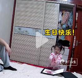 女儿:生日快乐!(女儿捧起百元大钞说)