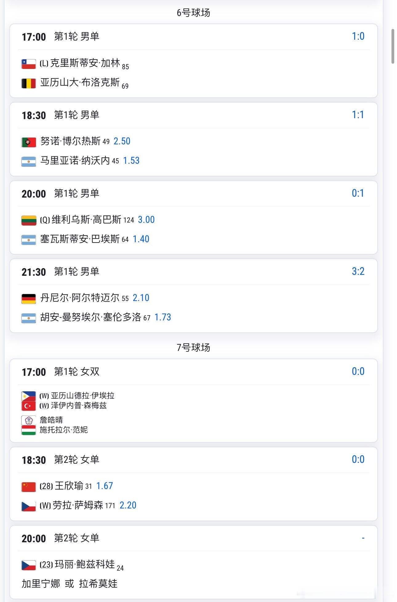 7号球场不早于20:30王欣瑜🇨🇳vs萨姆森🇨🇿