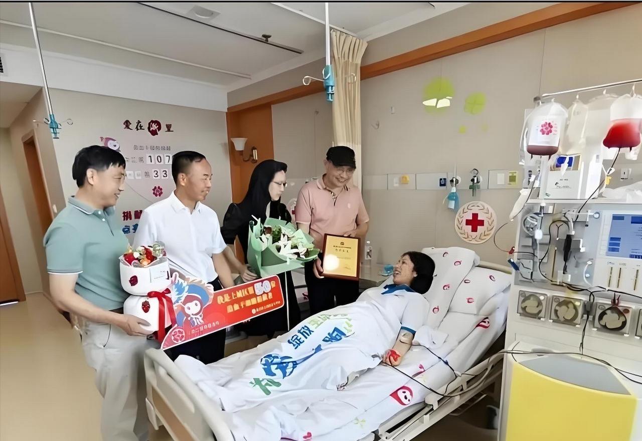采集当天,金格格躺在病床上整整四个多小时,血液从右臂抽出来,经过分离机提取干细胞,再从左臂输回体内。