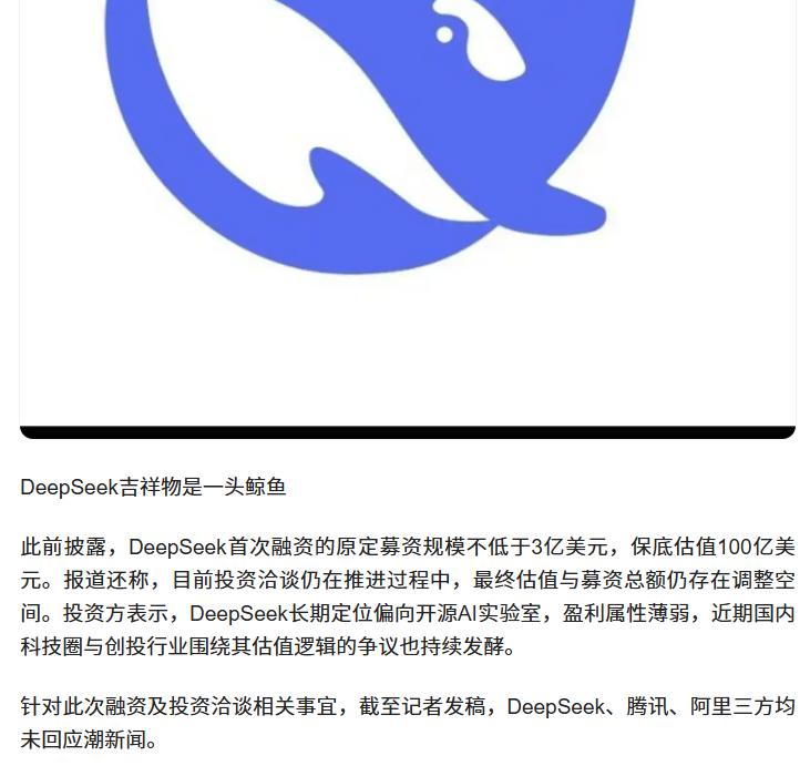 传腾讯、阿里洽谈投资 DeepSeek