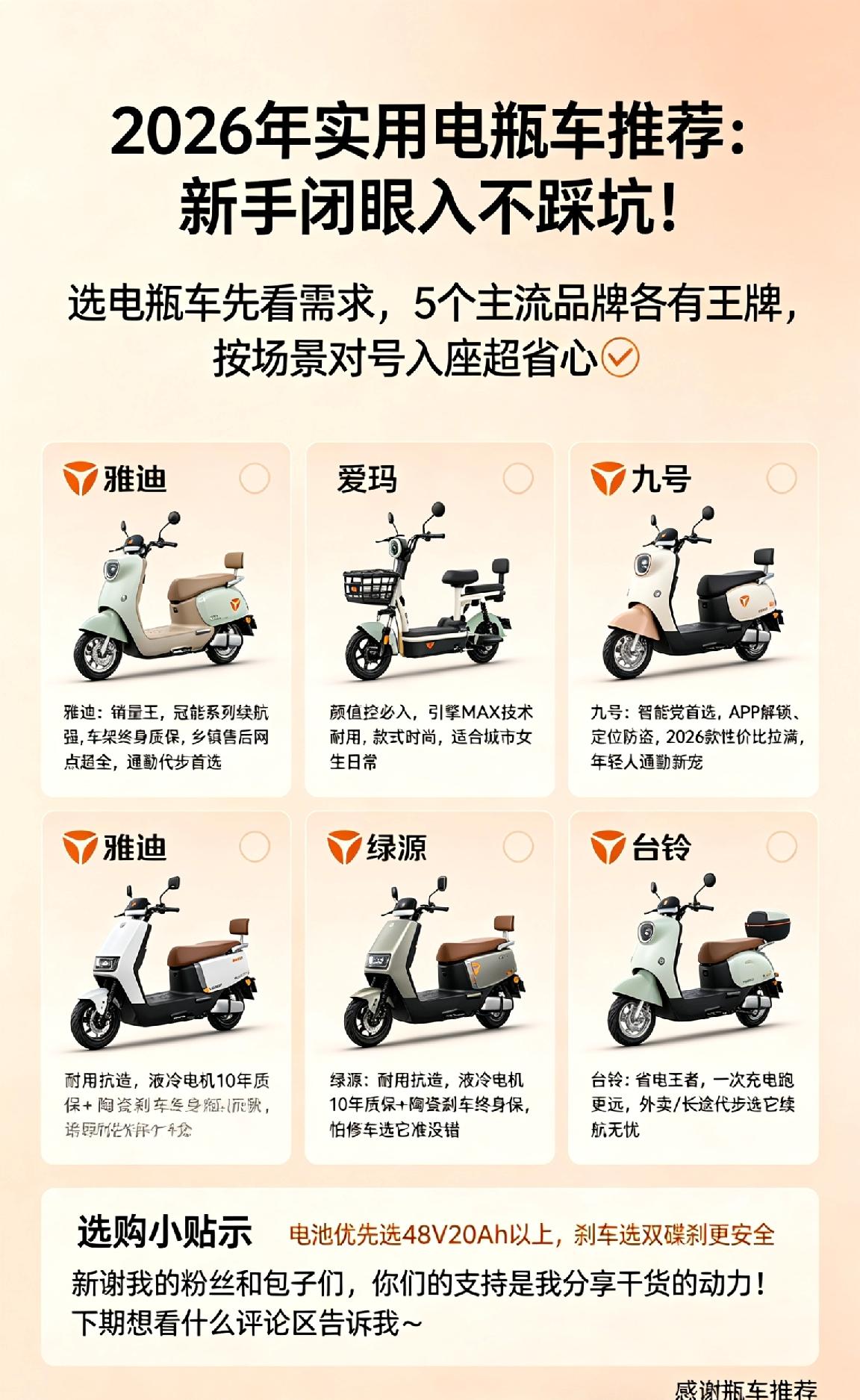 选电瓶车先看需求,这5个主流品牌各有王牌,按场景对号入座超省心👇