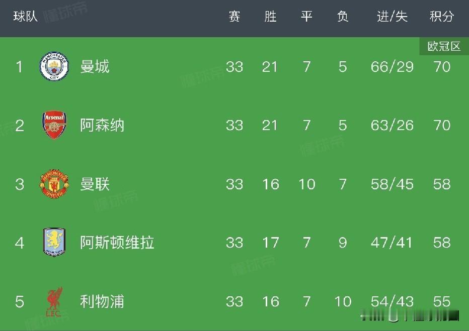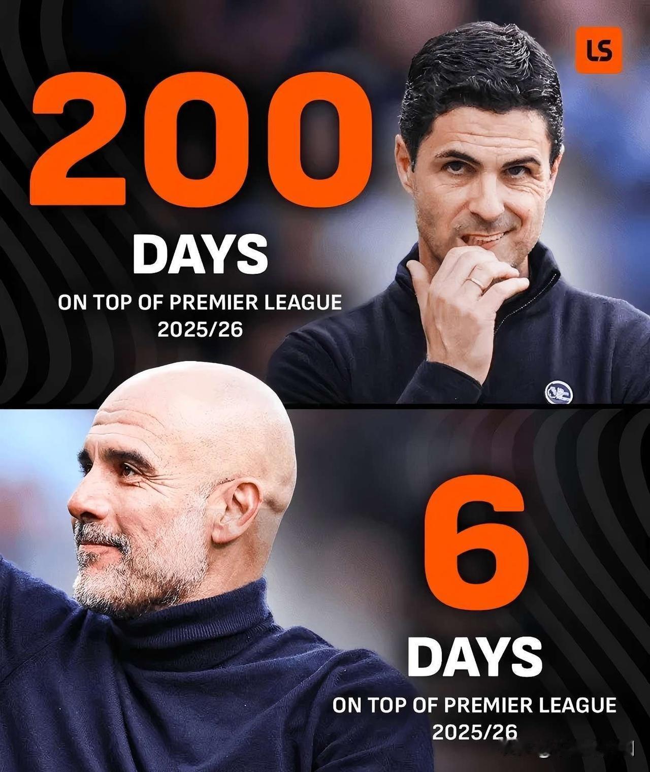 同积分,同净胜球情况下,曼城以3个进球优势,暂居第一。阿森纳在联赛榜首长达200天,而曼城只用了11天,就追平两队的分差,重回积分榜榜首。