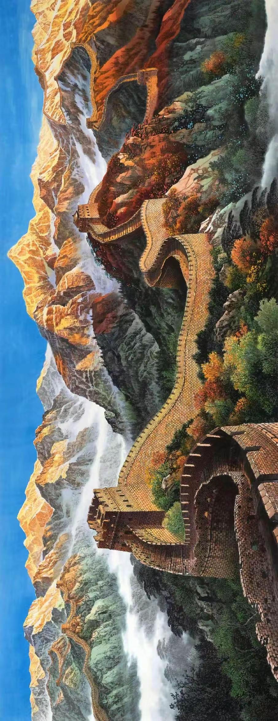 长城映金辉。感受国画的意境之美 创作者中心 创作灵感 带你走进画里 国画长城定制 尺寸:140×365厘米