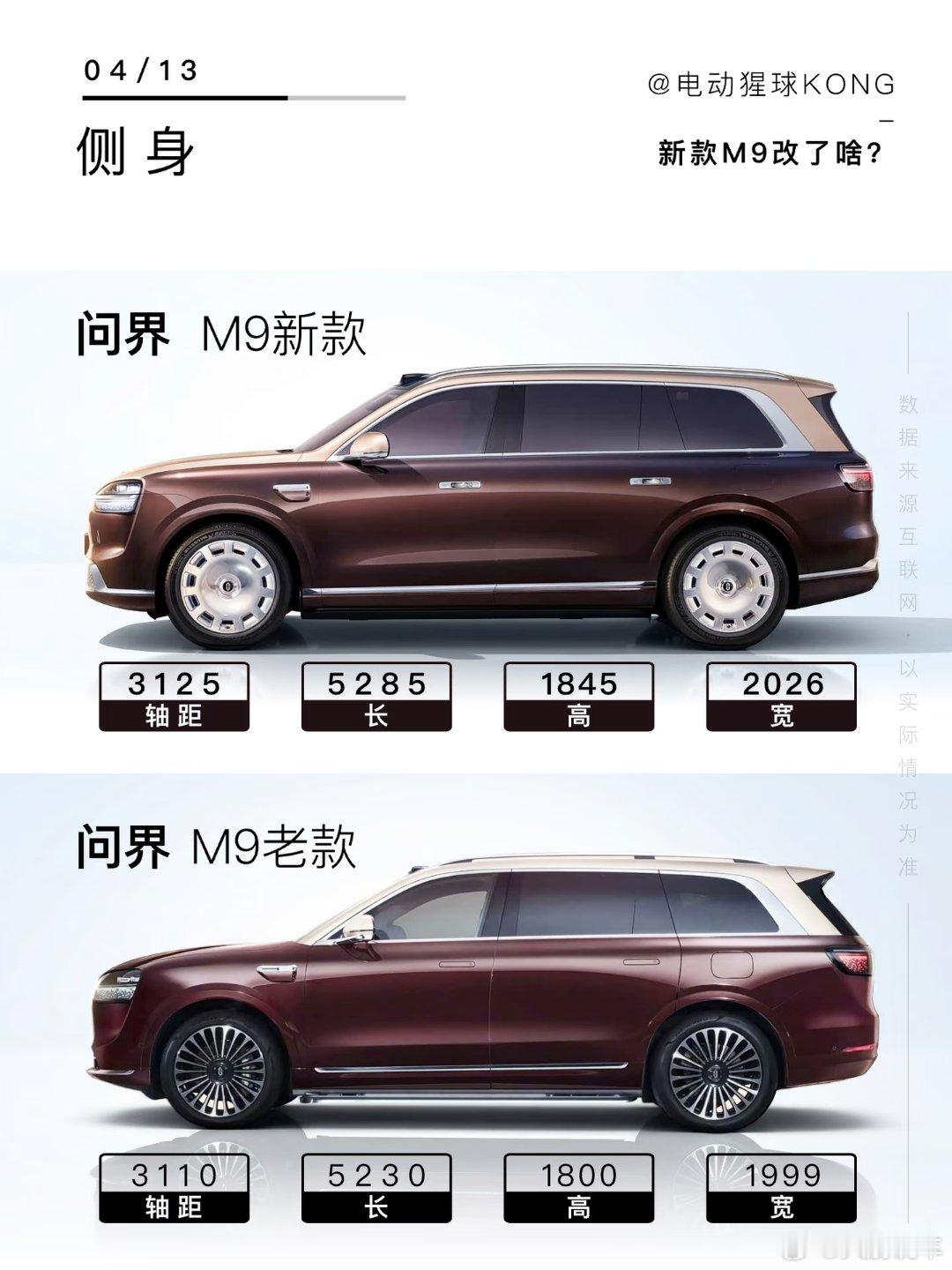 问界新款M9公布,尺寸提升,前脸下方和尾部微调,半隐藏门把手和大饼轮毂终于来了,