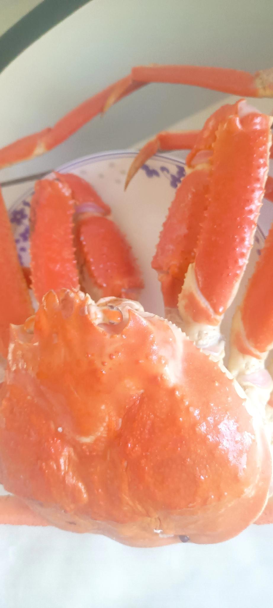 他自己做了介绍,是某某的老公,他媳妇不是在延吉旅游呢嘛,快递回来了螃蟹,让给我送过来一个,他直接蒸熟了,给我送过来的。