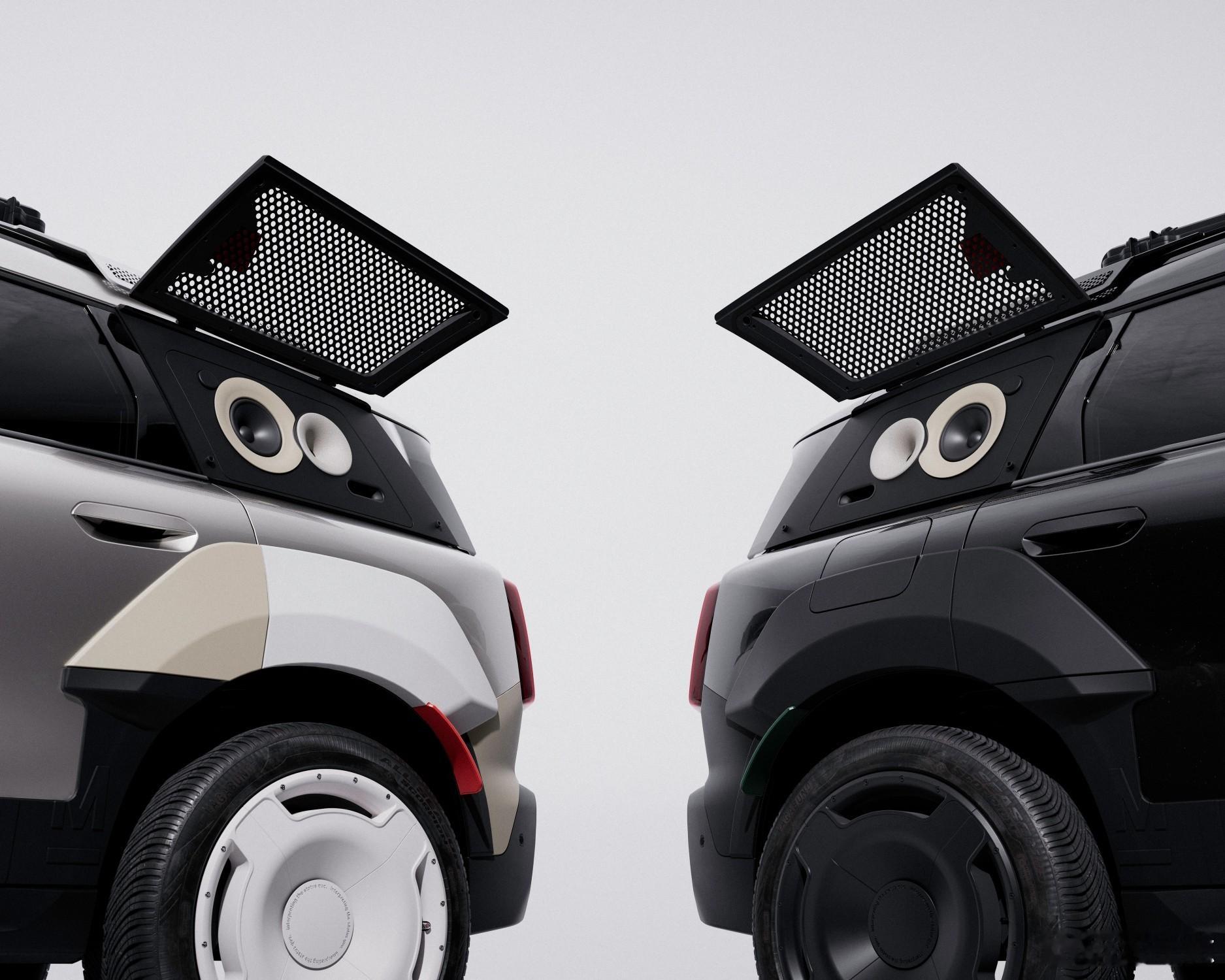 名车志新闻 【移动音乐节现场,MINI × Vagabund 联名定制车来了】MINI 联手奥地利设计工作室 Vagabund,打造两台Countryman 专属定制概念车,把冒险态度、音乐文化直接装上车。两台基于 MINI Countryman 的 one‑off,化身移动舞台——后侧窗被替换为户外投声系统、尾门打开释放强劲低音;屋顶行李架与喇叭罩语汇呼应,配 20 英寸“扬声器式”轮毂。Melting Silver(明快)与 Midnight Black(沉稳)两种视觉性格相互呼应,彰显音乐、社群与冒险精神的融合。这两台 “移动舞台” 不售卖,其中一台将在2026 北京车展首发亮相,你更偏爱哪台?